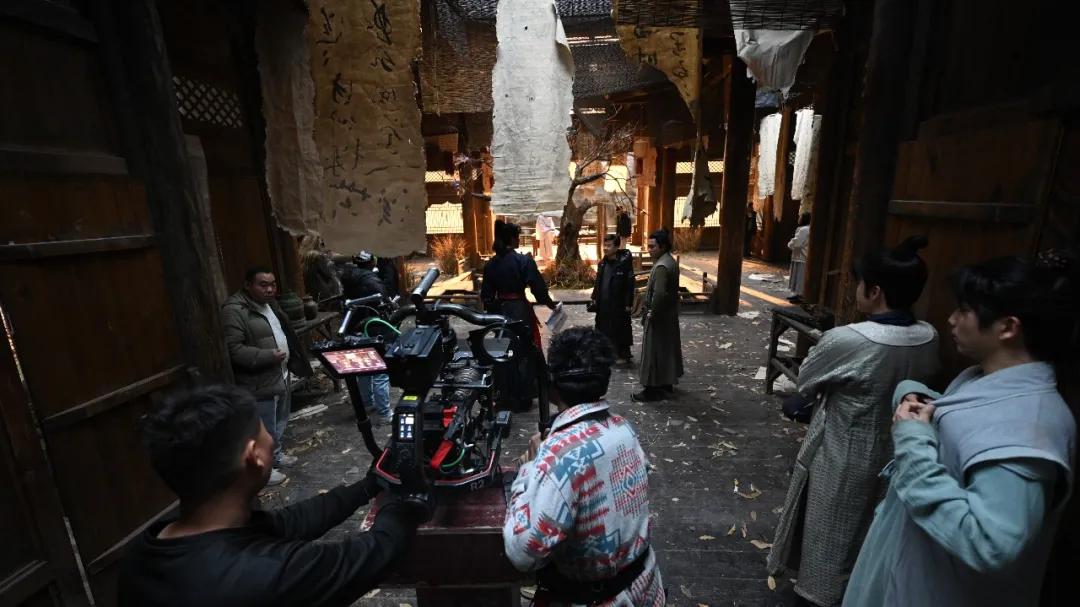 “咔,换场景!”一场市井戏拍摄完成后,史岳立刻从监控器前起身,快步跑到片场,亲手协助工作人员拆除道具、整理场地,为下一个场景的拍摄做准备。“在片场,时间就是金钱,我们必须分秒必争。”坚守拍摄一线的同时,剧组里的团圆暖意也从未缺席。在拍摄现场,记者还偶遇了有着“横店战神”之称的群演周保,他笑着说,从2019年开始,每年的春节他都是在横店片场度过的,对他而言“戏大如年”,只要能报上戏就拍。“片场的年味也很足,来自天南地北的影视人聚在一起,一起拍戏、一起吃年夜饭,也是一种别样的团圆。”来自北京的薛洋坦言,第一次参与电视剧拍摄就遇上了春节,也是他第一次在外过年。“一开始知道过年回不去的时候,心情很复杂,一面是不能和家人团圆的失落,一面是对拍摄工作的期待。”薛洋说,年夜饭是和剧组的伙伴们一起吃的,大家围坐在一起,有说有笑、暖意融融,这段在片场过年的经历,温馨又特别,值得永远铭记。