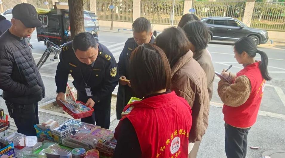 社区文化网(苏勤 谢涵)为切实保障广大师生身体健康和生命安全,全面净化校园周边环境,2026年2月27日,射洪市凉帽山社区联合市场监管所、综合执法中队、派出所等部门,对城西学校及校园周边商铺开展开学前安全专项检查。
