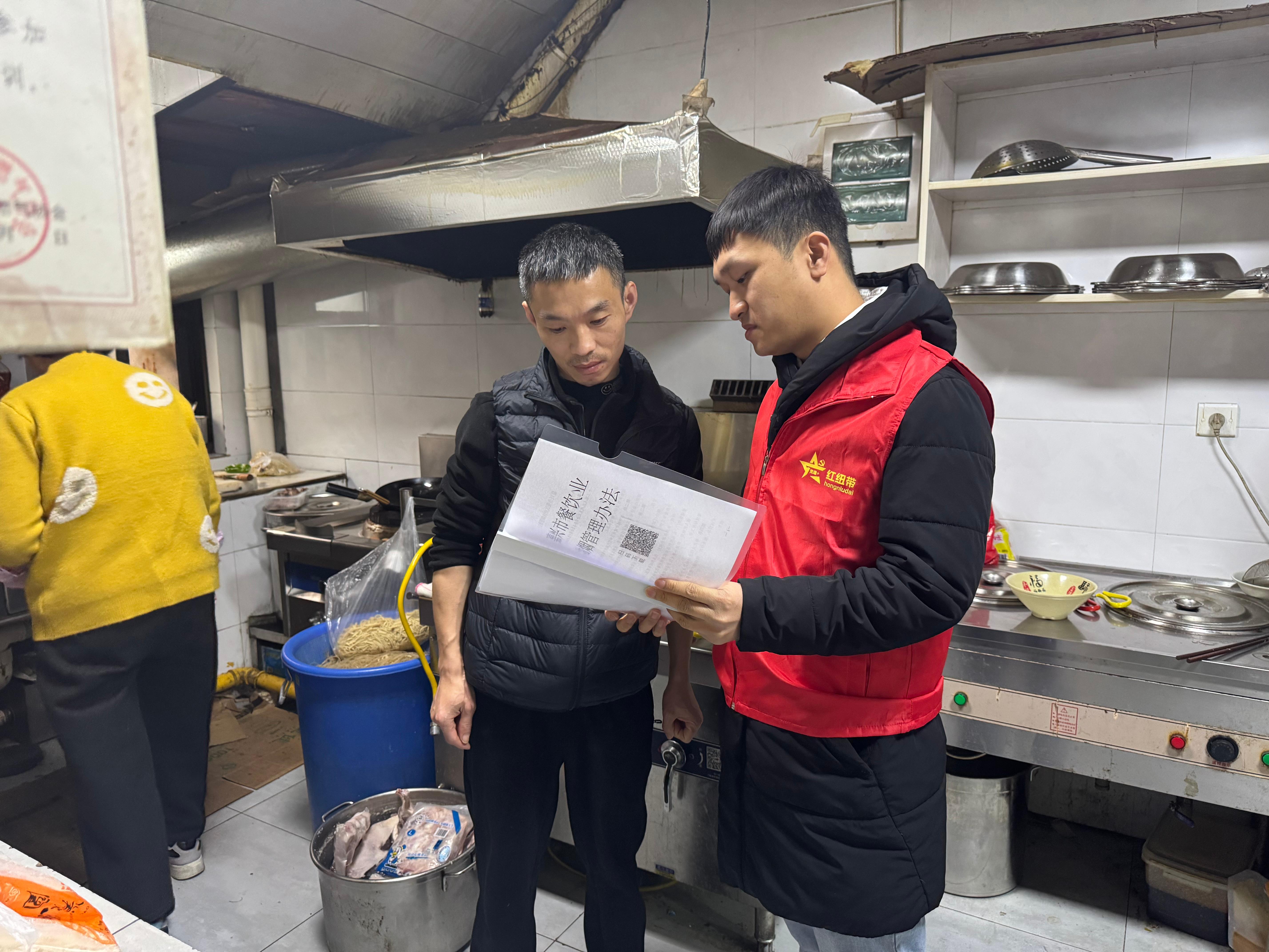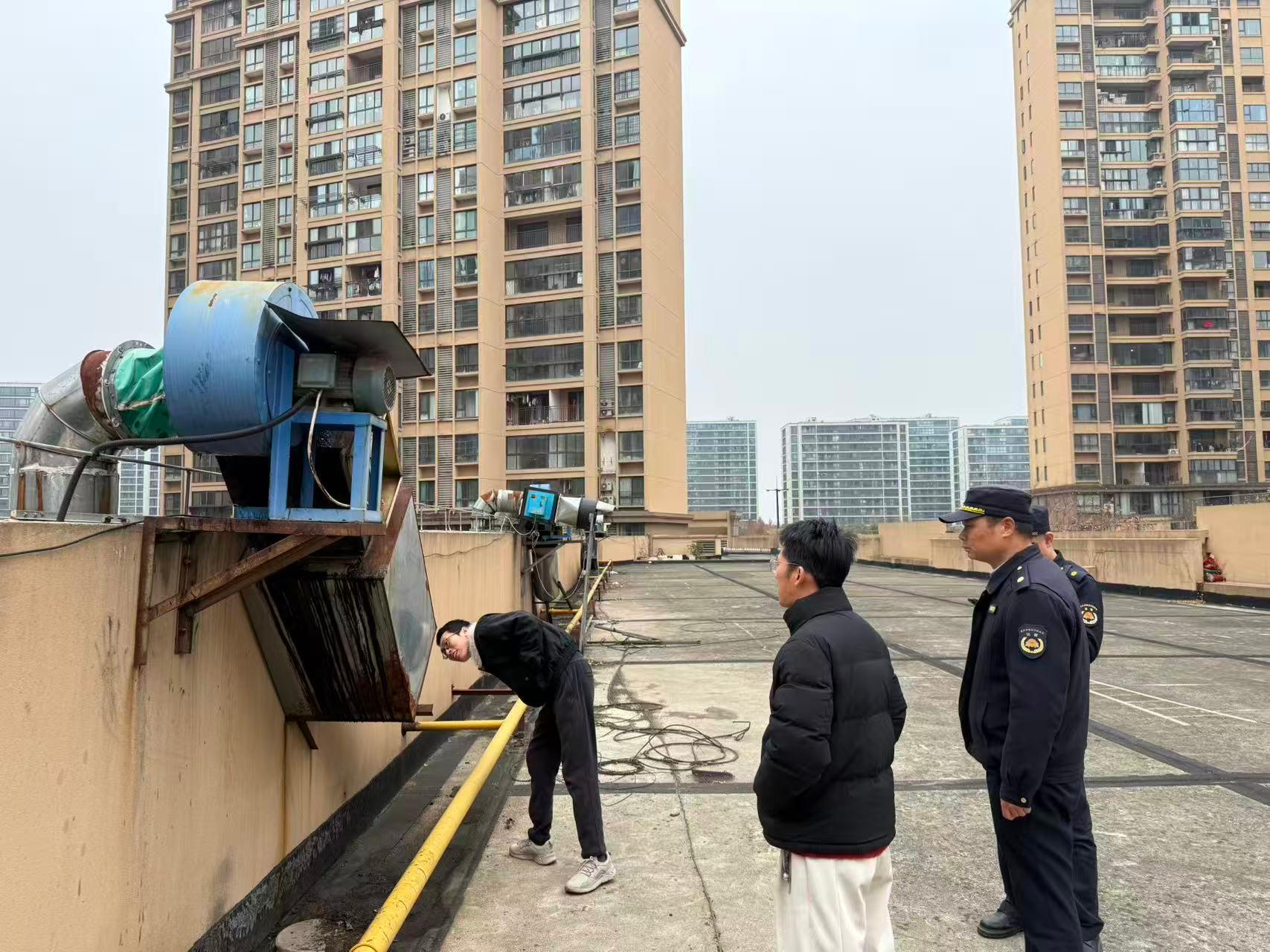 双重防护,筑牢安全防线。一方面,确保净化设备与烟道匹配,要求商户营业时必须同步开启设备,杜绝“装而不用、用而不维”,并定期检查更换老化破损的滤网、风机等核心部件,保证净化效果,消除油污堆积引发的火患;另一方面,检查厨房内灭火器、消防栓是否按标准配备且摆放在灶台、烟道附近的易取位置,每月核查器材有效期与完好度,确保随时可用。通过“清油烟”与“抓安全”并举,形成“风险排查—督促整改—隐患回头看”的完整闭环,反复强调经营者作为“安全生产第一责任人”的职责,强化其日常安全管理意识。