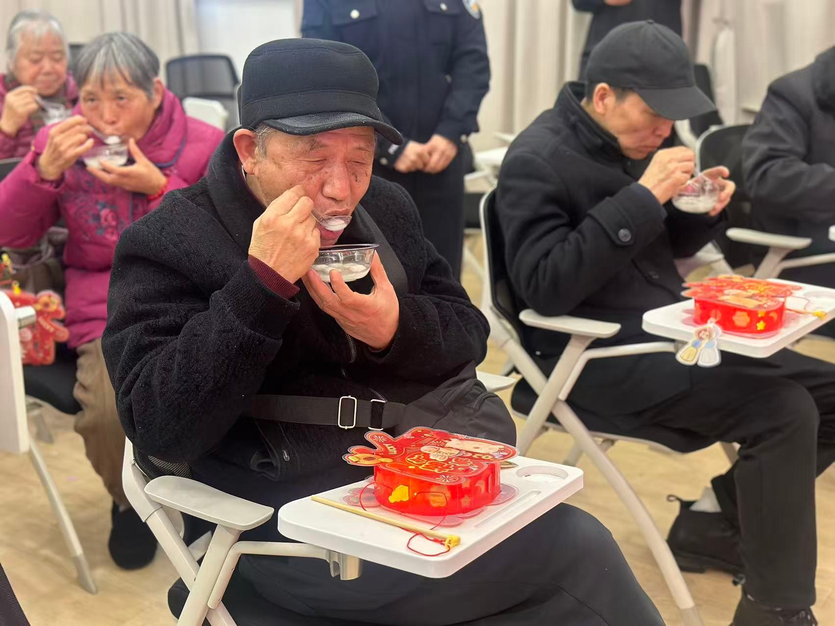 一旁的“暖心汤圆铺”热气腾腾,社区志愿者现场煮制汤圆。黑芝麻传统口味香甜软糯,大家围坐在一起品尝,暖意从舌尖甜到心间。