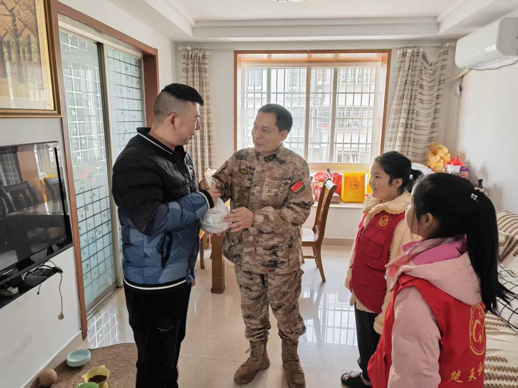 民俗活动开展期间,张化波又化身“后勤兵”,主动投身汤圆烧制工作。忙碌之余,他始终记挂着辖区现役军人家属,联合青少年志愿者,带着刚出锅的汤圆与节日祝福,开始上门走访。每到一户,他都与军属们亲切交谈,详细询问他们的生活状况与实际需求,传递社区与社会各界的关怀。