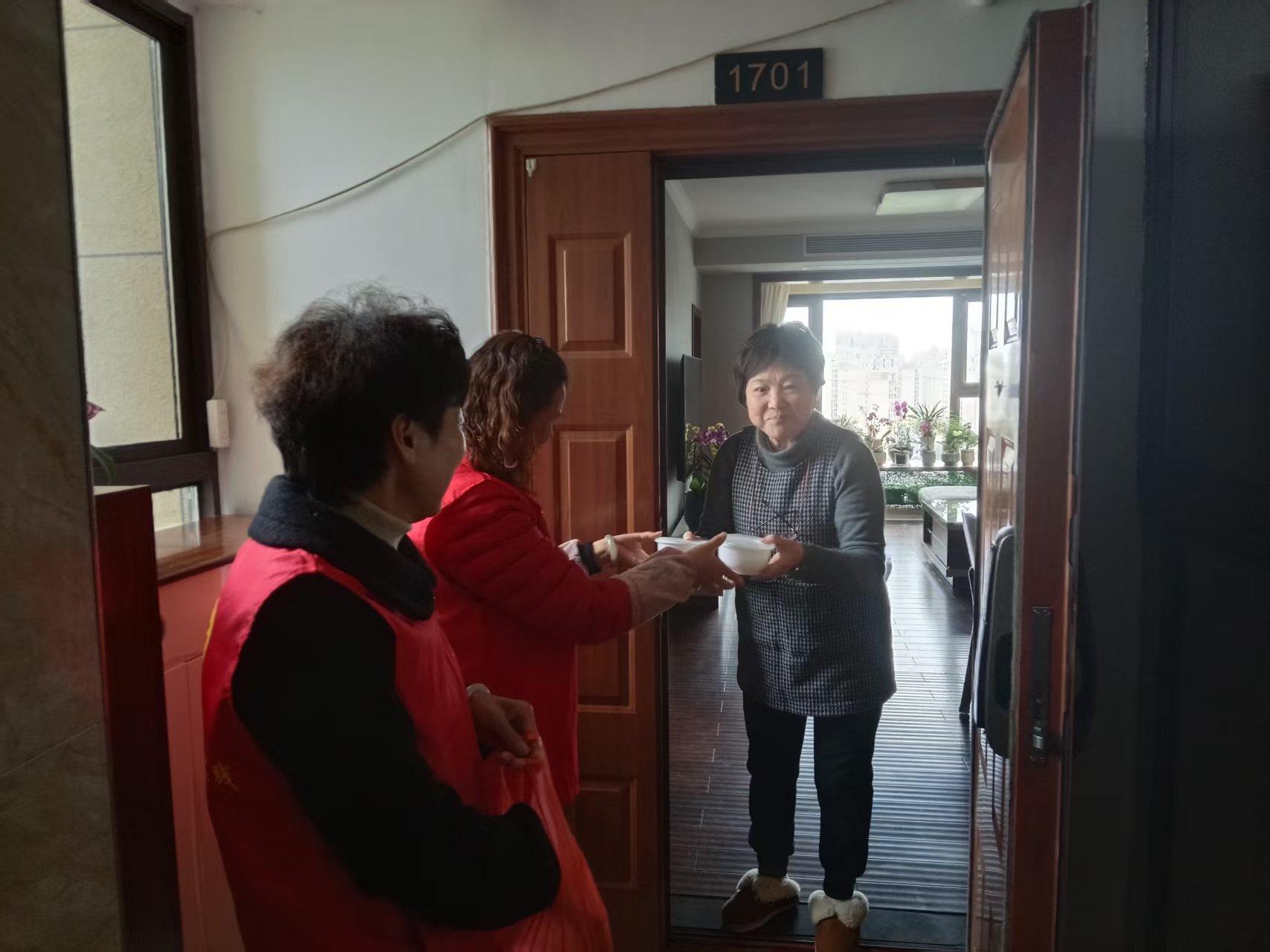 品尝之余,社区迅速组建起“送福小分队”,将刚出锅的汤圆精心打包,送往社区高龄老人、独居长者及在岗保安的手中。“元宵节快乐!这是我们刚包的汤圆,趁热吃!”每到一户,志愿者们都会送上节日的问候与诚挚的祝福。独居老人李爷爷接过汤圆,感动地说:“孩子们都不在身边,没想到社区这么惦记我,这汤圆吃在嘴里,暖在心里!”坚守岗位的保安师傅也接过热乎乎的汤圆,连声道谢:“虽然不能回家过节,但社区的关怀让我感受到了家的温暖。”
