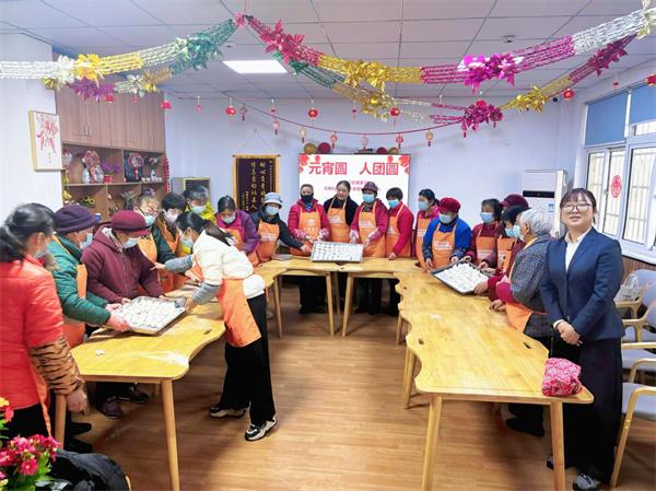活动现场,红灯笼与新春装饰相映成趣,处处洋溢着喜庆祥和的节日氛围。在居家养老中心,工作人员与老人们齐聚一堂,共同体验搓汤圆的乐趣。大家围桌而坐、分工协作,从揉制糯米面团、填充香甜馅料,到搓制圆润汤圆,每一个环节都默契配合。大家手把手教学、面对面交流,欢声笑语间,一个个洁白的汤圆摆满托盘,承载着满满的团圆之意。