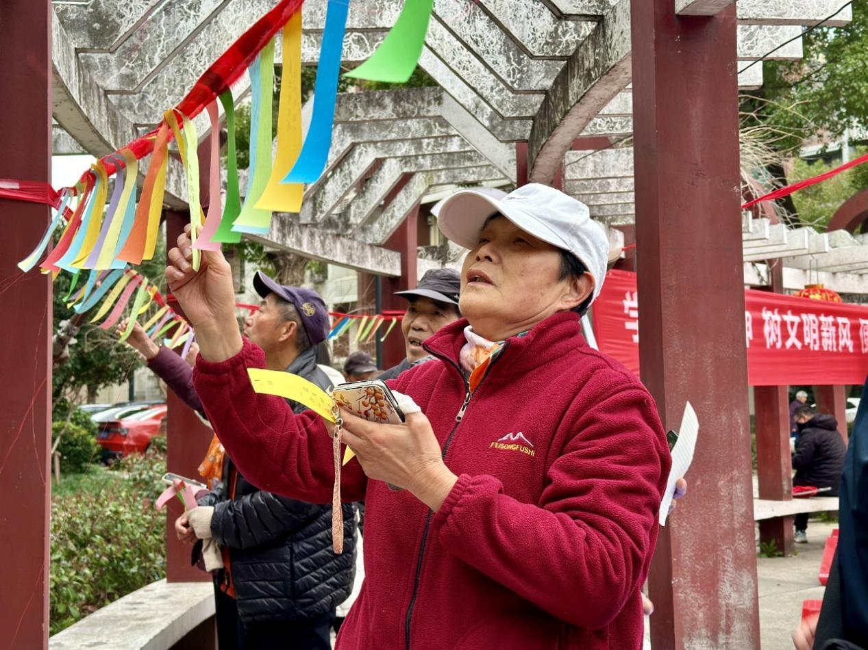不远处,猜灯谜区域人头攒动。“大家一个一个来,不要着急。”近百条灯谜随着微风轻轻摇曳,内容既有传统的字谜、成语谜,也巧妙融入了垃圾分类、反诈知识、交通安全等科普常识。“阿姨,这个谜底是不是‘投放点’?”王楚梦小朋友指着“易腐垃圾丢哪里”的谜面,眼睛亮晶晶地望向工作人员。得到肯定答复后,她高兴地兑换了一个小礼品。一旁的家长张艳笑着感慨:“既能玩,又能学,这样的活动真有意义。