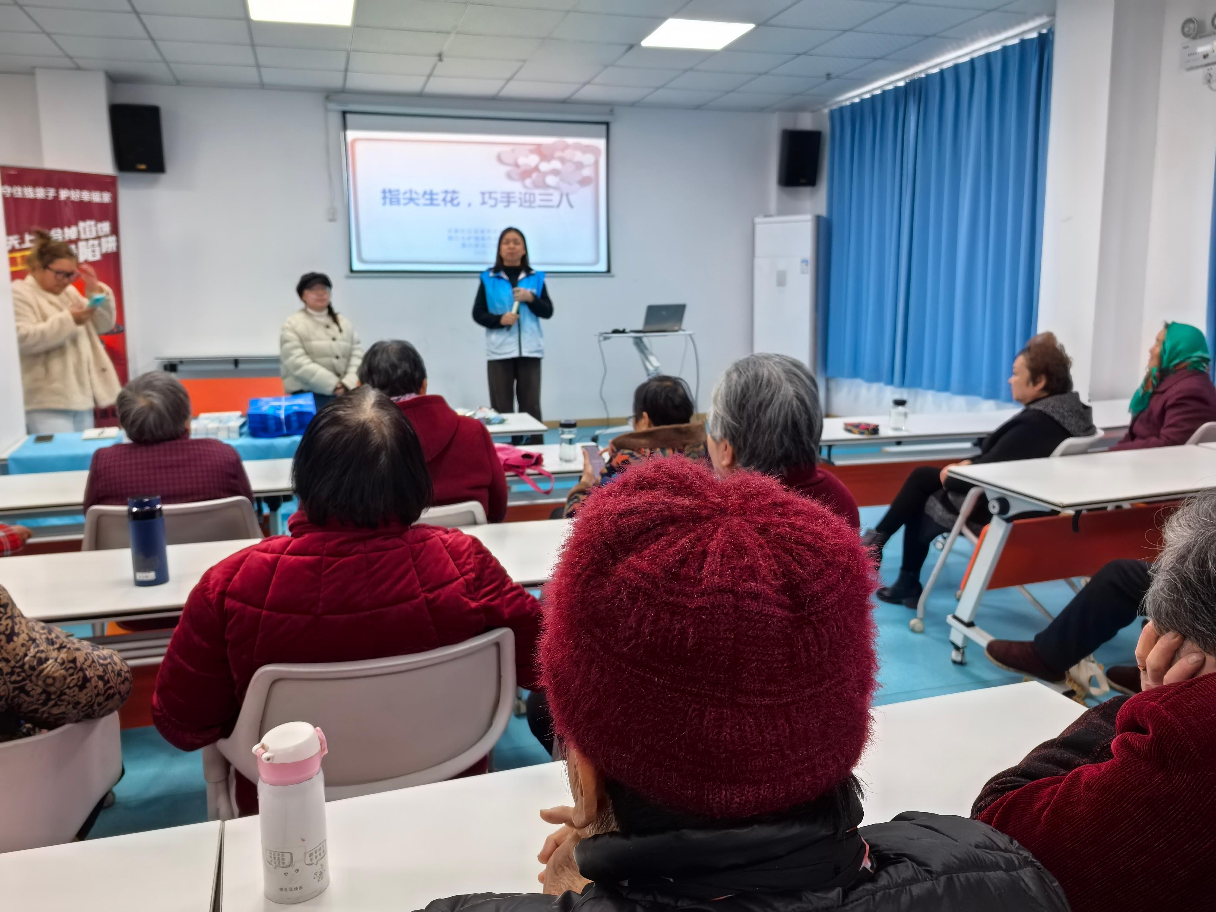 在“三八”国际妇女节来临之际,嘉兴经开区城南街道长新社区开展“指尖生花,巧手迎三八”手工玫瑰花制作主题活动,将趣味文娱与便民健康服务融为一体,让辖区居民在轻松愉悦的氛围里喜迎佳节,收获满满温暖与实用知识。