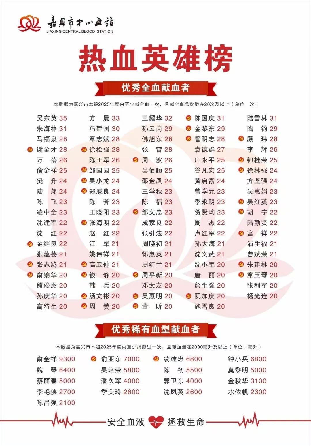 活动现场,嘉兴市中心血站党支部委员、副站长张瑜宣读2025年度嘉兴市本级无偿献血优秀个人的通知文件。徐军站长、张瑜副站长为优秀全血献血者代表颁发证书、送上鲜花与感谢信。这份“热血英雄榜”将在嘉兴市各献血点展示,让每一份善举被看见、被铭记、被传颂。(周赞)