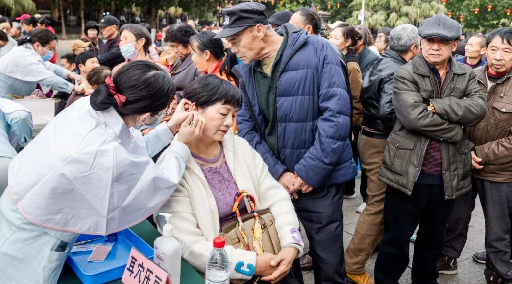 在中医特色治疗体验区,市民们争相体验穴位贴敷、中药封包、耳穴压豆、核桃灸等中医传统疗法。
