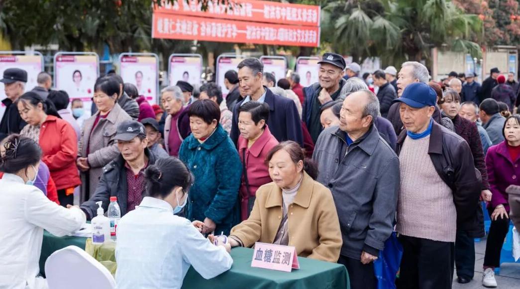 测量血糖、血压处备受青睐,现场体验群众络绎不绝。