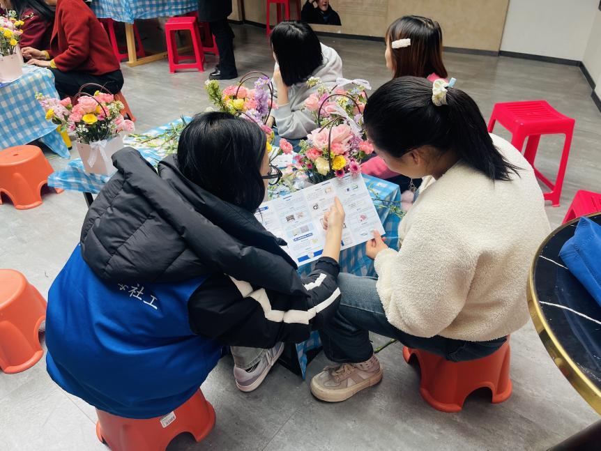 活动现场温馨雅致,花艺老师耐心讲解插花技巧,大家精心选材、修剪、搭配,亲手制作出一束束精致美观的花艺作品,在欢声笑语中度过温馨的节日时光。禁毒社工借助活动契机,以发放禁毒宣传资料、以案说法等形式,详细讲解毒品种类、危害、新型毒品伪装形式及防范技巧,重点提醒大家警惕“奶茶”“跳跳糖”“电子烟油”等伪装毒品,引导大家提高警惕、远离毒品。 同时倡导妇女群众争做家庭禁毒宣传员、监督员,将学到的禁毒知识传递给家人、朋友,带动身边人共同树立“珍爱生命、远离毒品”的理念,守护家庭幸福与社区和谐。