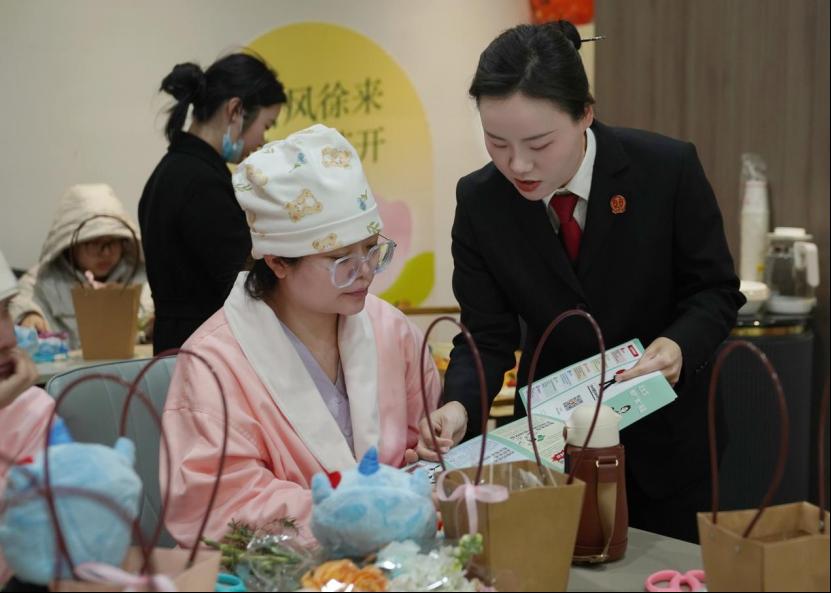 活动室内花香淡淡,一场温馨的“插花+普法”交流正在进行。没有照本宣科的讲座,只有面对面、心贴心的拉家常。“孕期被调岗怎么办?”“产假结束回去上班,岗位没了怎么办?”“家里的房子是婚前买的,和我有关系吗?”这些来自妈妈们内心困惑的问题,在插花间隙被自然地提了出来。面对这些关切,“红扣子”普法宣传队的成员们化身“知心姐妹”,结合《妇女权益保障法》、《民法典》中的具体规定,用一个个真实的案例,将女职工保护、母婴权益等法律知识,拆解成大家听得懂、用得上的“生活小贴士”。