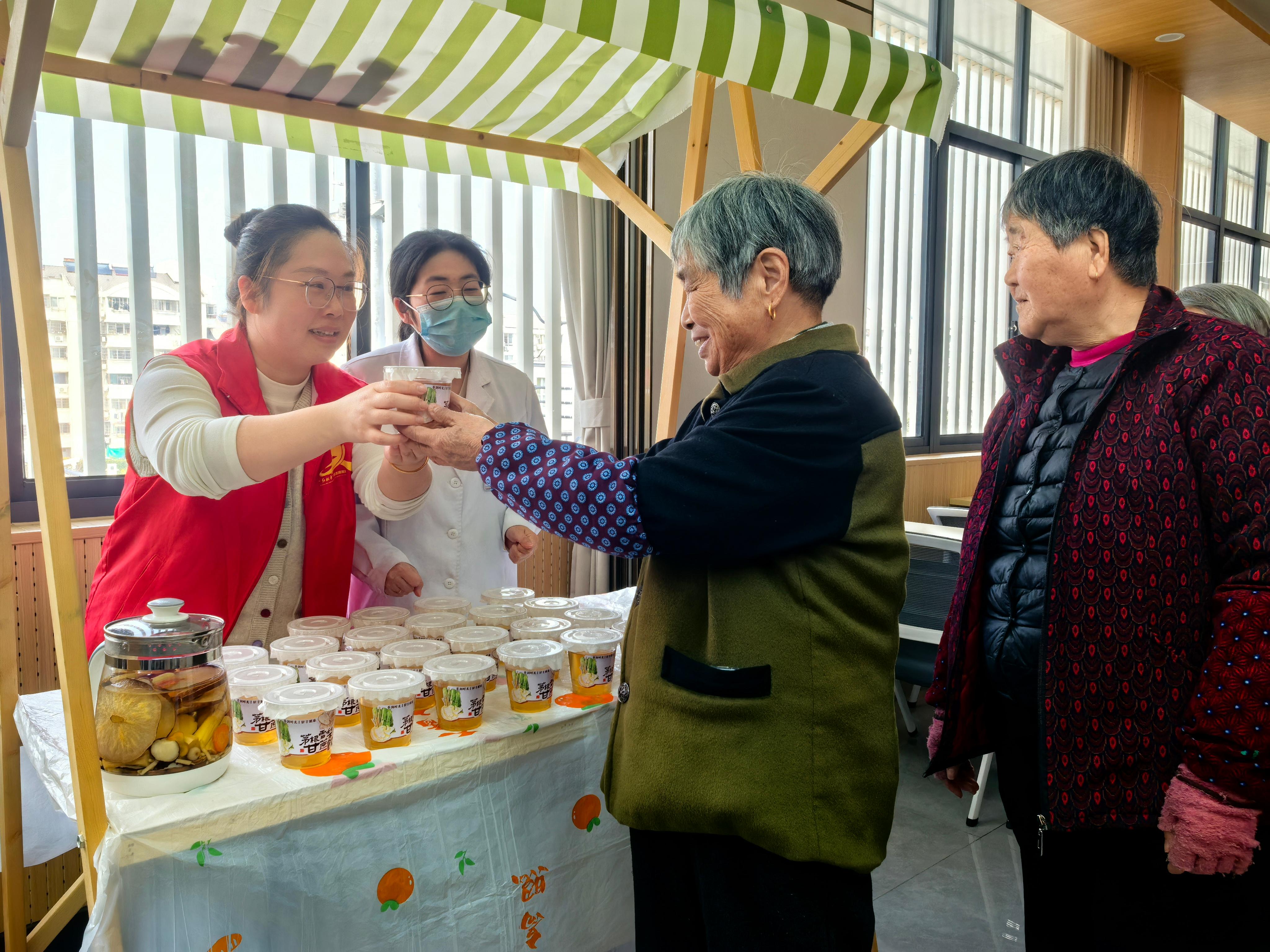 如果说前面的环节是“干货输出”,那最后的互动体验则将活动氛围推向高潮。一杯杯精心熬制的茅根雪梨甘蔗饮,不仅润燥生津,更成为传播中医药文化的“舌尖使者”。老人们手捧温热的茶饮,细品慢饮,耳畔是工作人员关于“药食同源”的生动讲解。从舌尖到心间,中医药文化不再是抽象的概念,而是化作可触可感的温情陪伴。