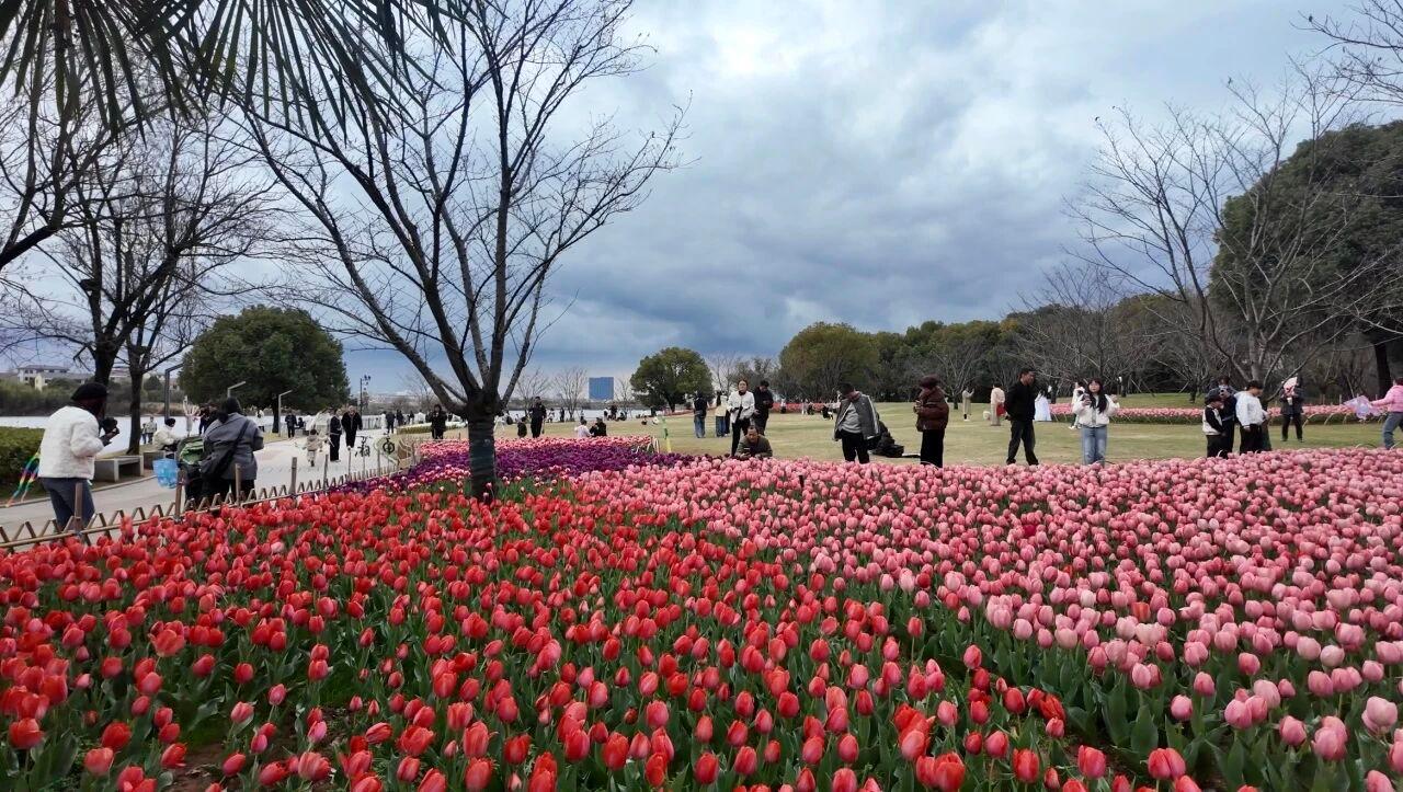漫步于环湖绿道,郁金香花带沿着湖岸蜿蜒伸展,与波光粼粼的湖面相映成趣,仿佛步入了一个童话世界。微风拂过,花香袭人,令人心旷神怡。无论是清晨的第一缕阳光,还是傍晚的温柔余晖,都为这片花海增添了几分浪漫与诗意。
