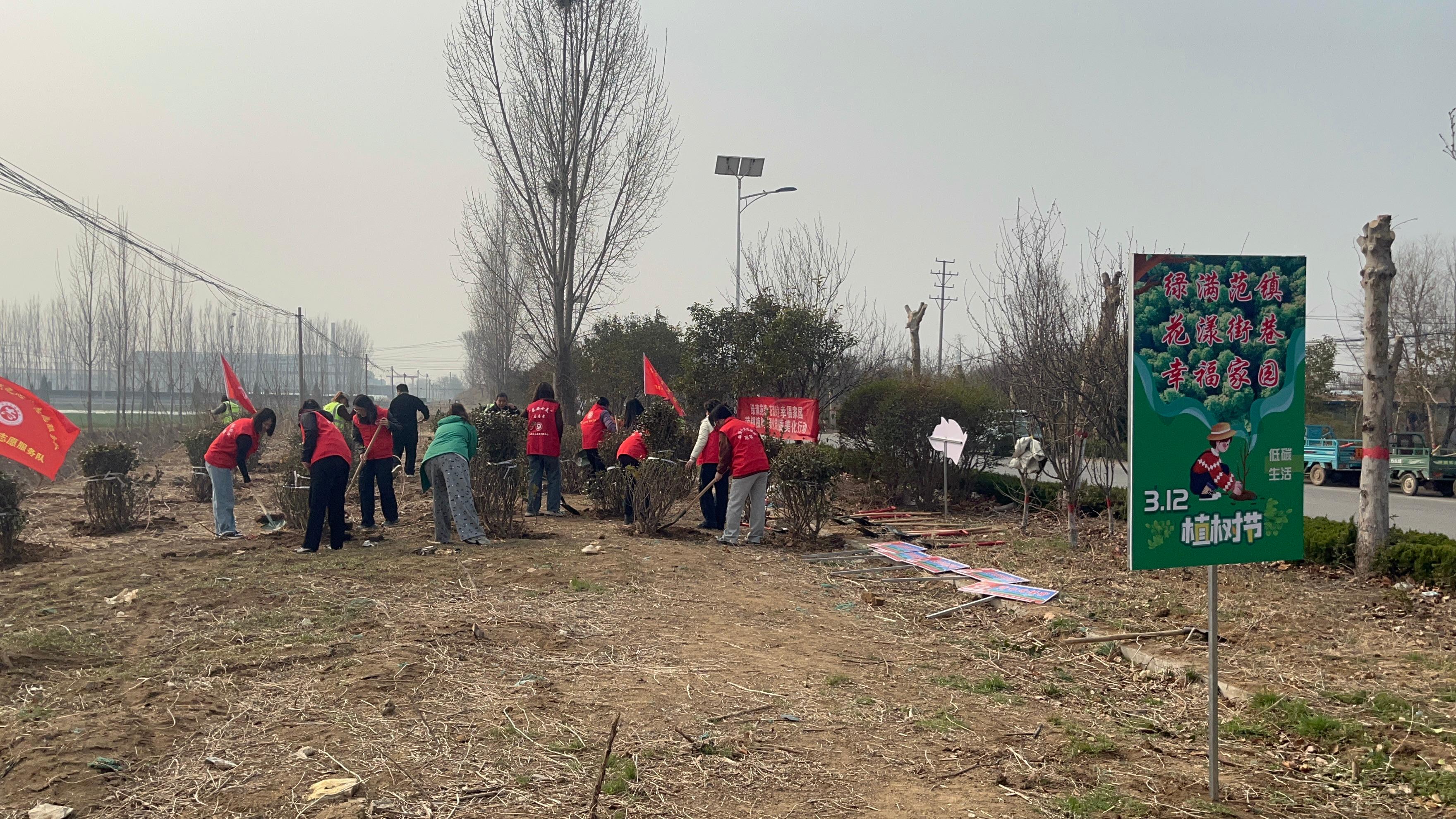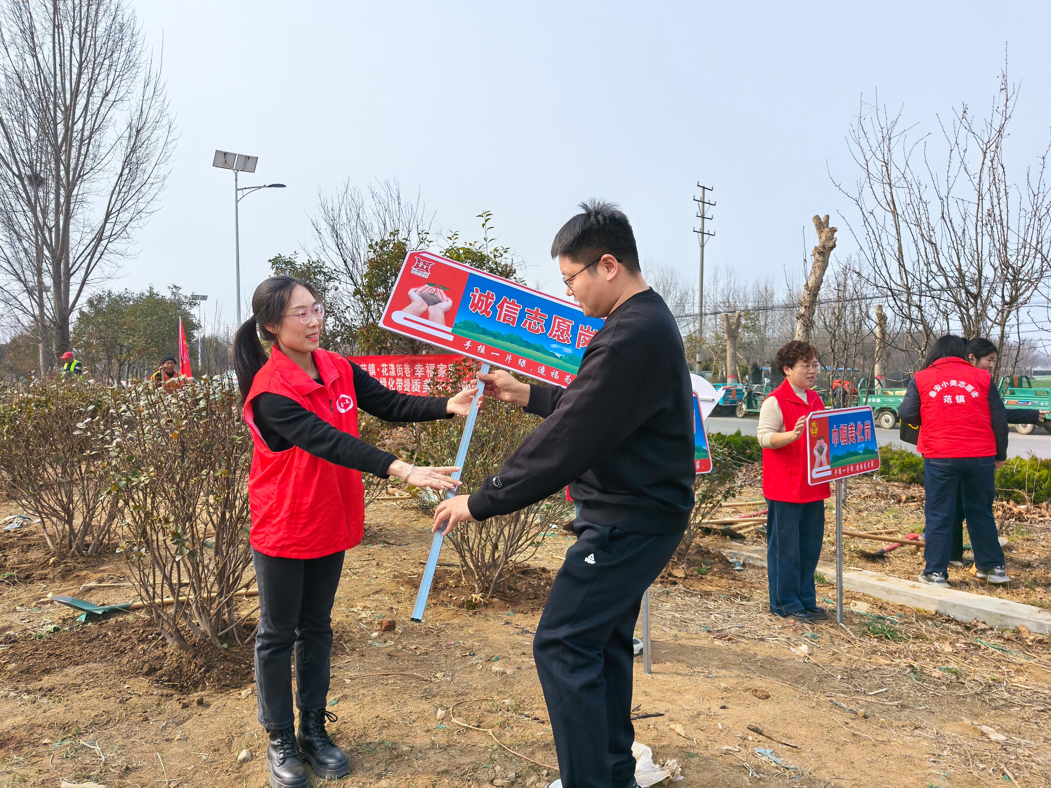 活动现场,志愿者们身着红马甲,手持铁锹、锄头,分工协作、干劲十足:扶苗培土、浇水固根、挂牌认养……每一道工序都细致规范。大家以实际行动践行绿色发展理念,不仅为乡村道路增添了盎然生机,更将“植绿、护绿、爱绿”的环保意识传递到千家万户。