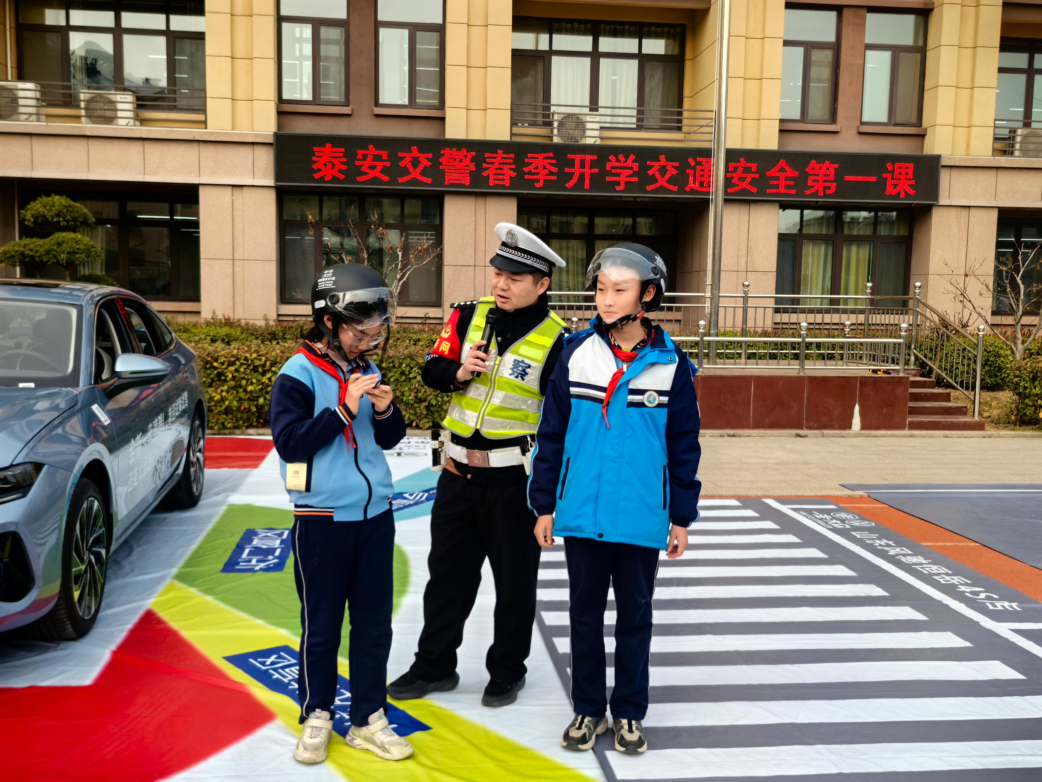 泰安交警城西大队:首场春季“沉浸式”交通安全课“开”进文化路小学