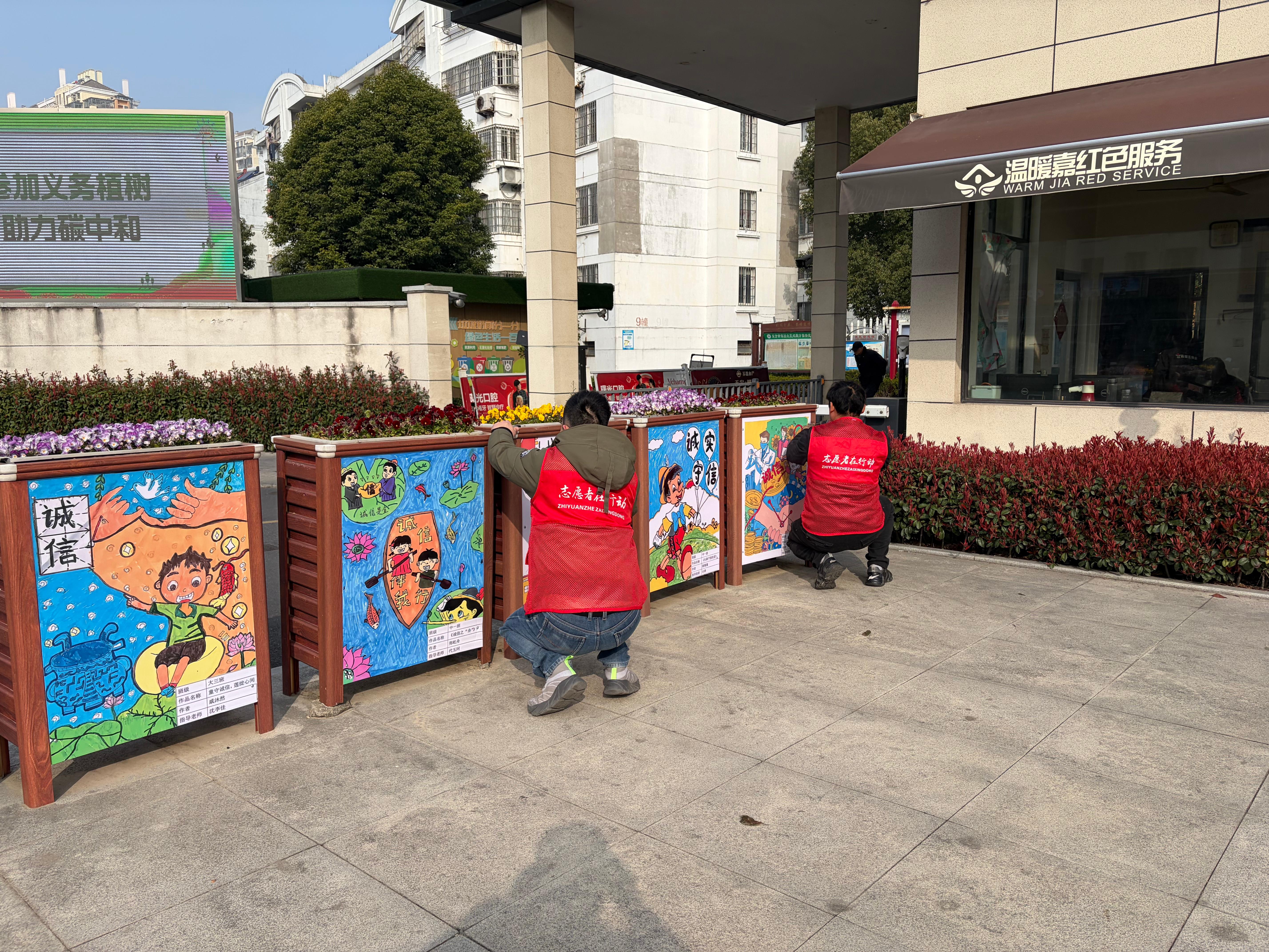 经幼儿园老师与社区工作人员共同评选,最终从众多作品中遴选出28幅优秀画作。为扩大活动影响力,社区将这些画作制作成主题海报,巧妙布置于东方新家园北区门口花箱侧面,以“微创意”打造了独特的“普法风景线”。沿街的花箱旁,一幅幅色彩鲜艳的绘画作品不仅为社区环境增添了童趣与活力,更让过往居民尤其是青少年在潜移默化中接受诚信教育与法治熏陶,实现了“教育一个孩子,影响一个家庭,温暖整个社区”的良好效果。