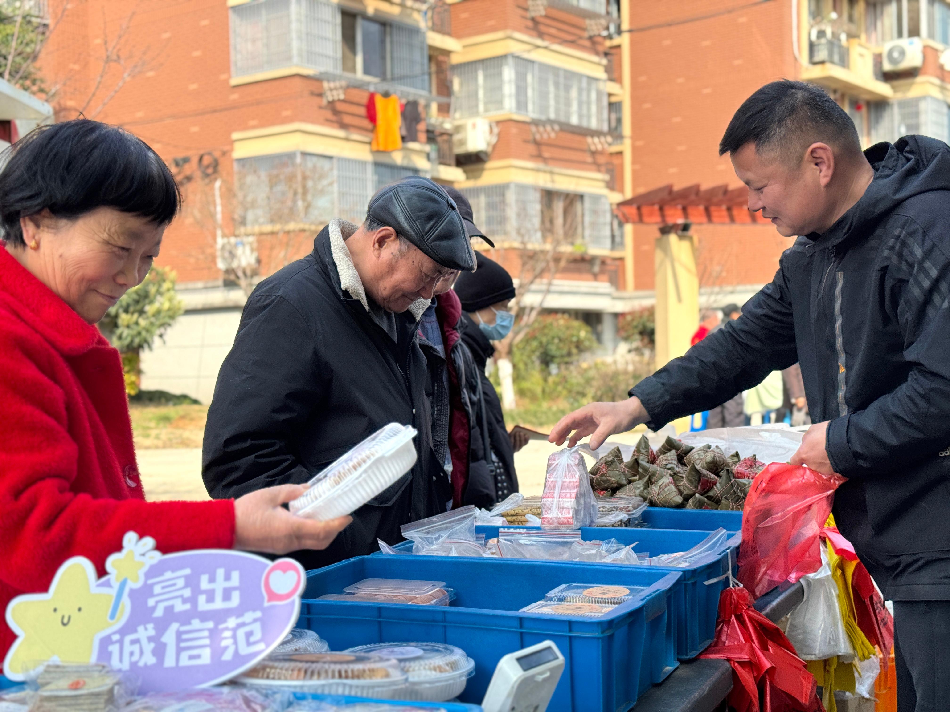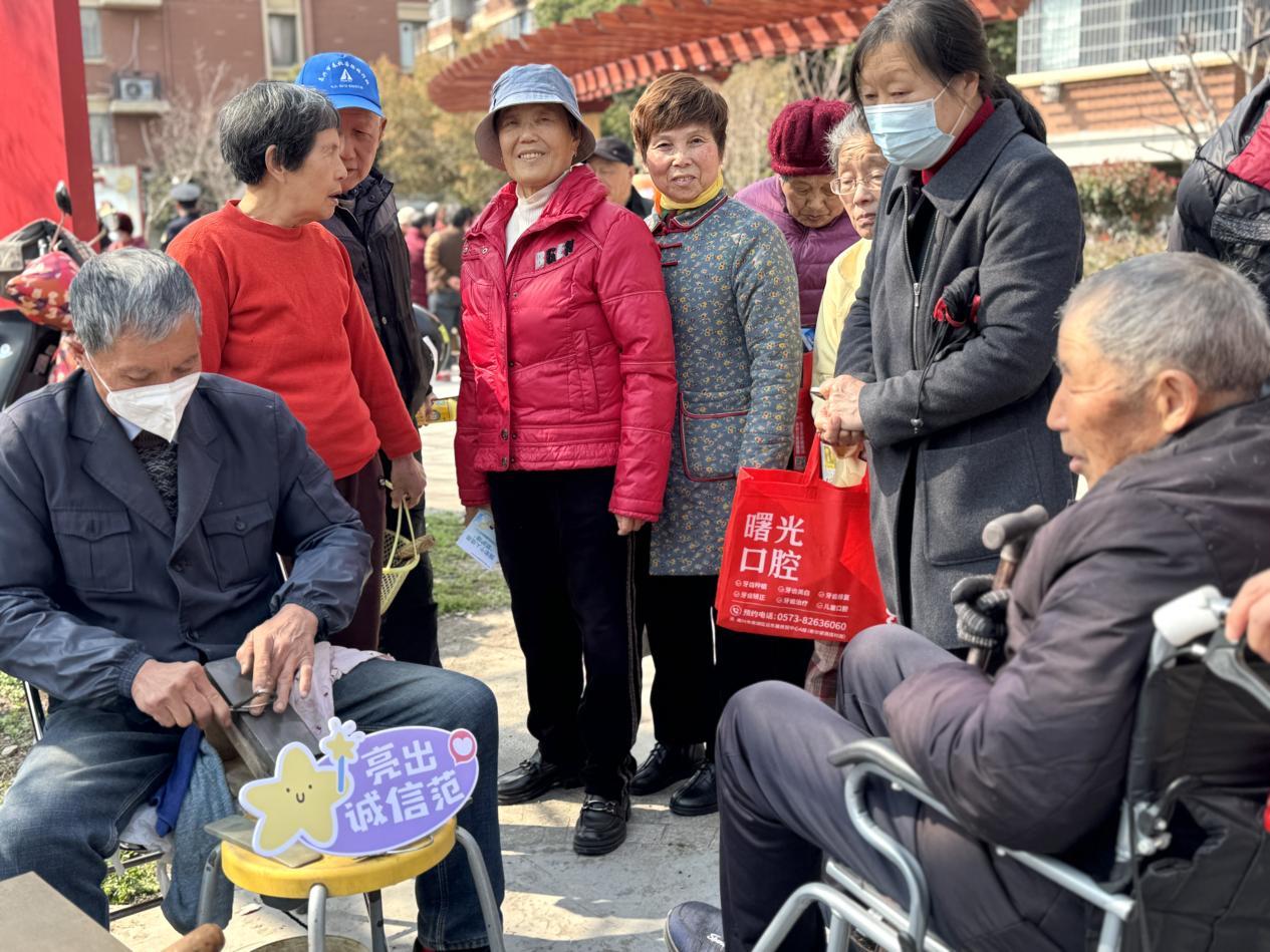集市上的理发、磨剪刀、新塍糕点、中医推拿等便民小摊,没有花里胡哨的宣传,全靠诚信和手艺留住居民,以实在亮出诚信范。知青俱乐部的师傅免费理发、手艺扎实、态度亲和、给老人孩子剪发格外细心;磨剪刀师傅坐在摊位前,细细打磨每一把菜刀剪刀,磨完的刀具锋利耐用,居民们都夸“实在靠谱”;新塍糕点摊位前香气扑鼻,明码标价、分量给足,老老少少围着选购,吃得安心又舒心。“这些小摊价格公道、做事实在,还有巾帼志愿者量血压,太贴心了,我乐意买单!”带着孙女逛集市的彭阿姨,手里拎着糕点,笑着夸赞这些诚信小摊。