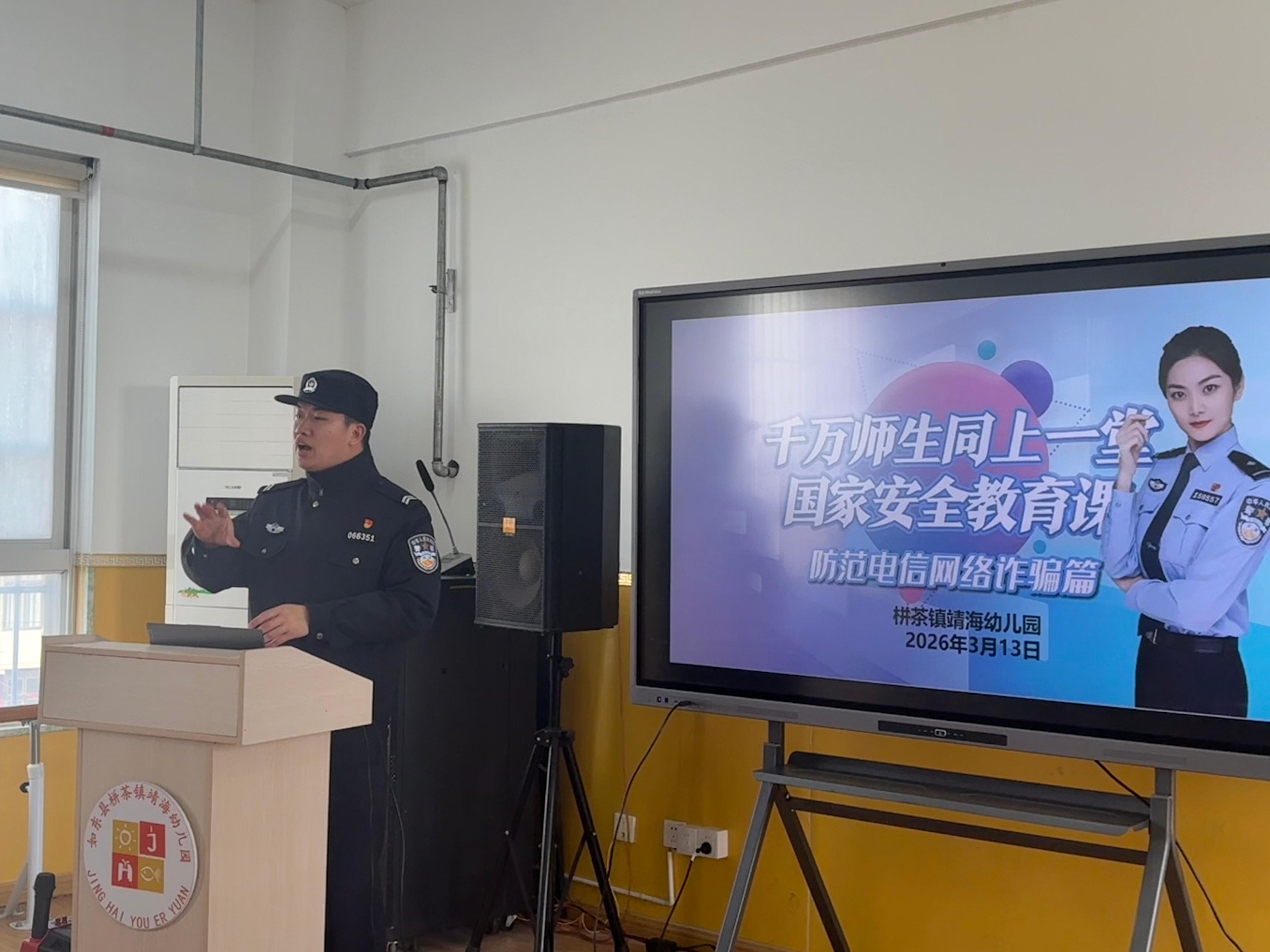 为进一步提升校园周边及幼儿家长、教职工的防诈识骗能力,筑牢家校安全防护网,2026 年 3 月 13 日,江苏省如东县公安局栟茶派出所民警走进靖海幼儿园,为全园家长及教师带来了一场干货满满、形式生动的反诈安全教育宣讲活动,将反诈安全知识送到家校 “家门口”。