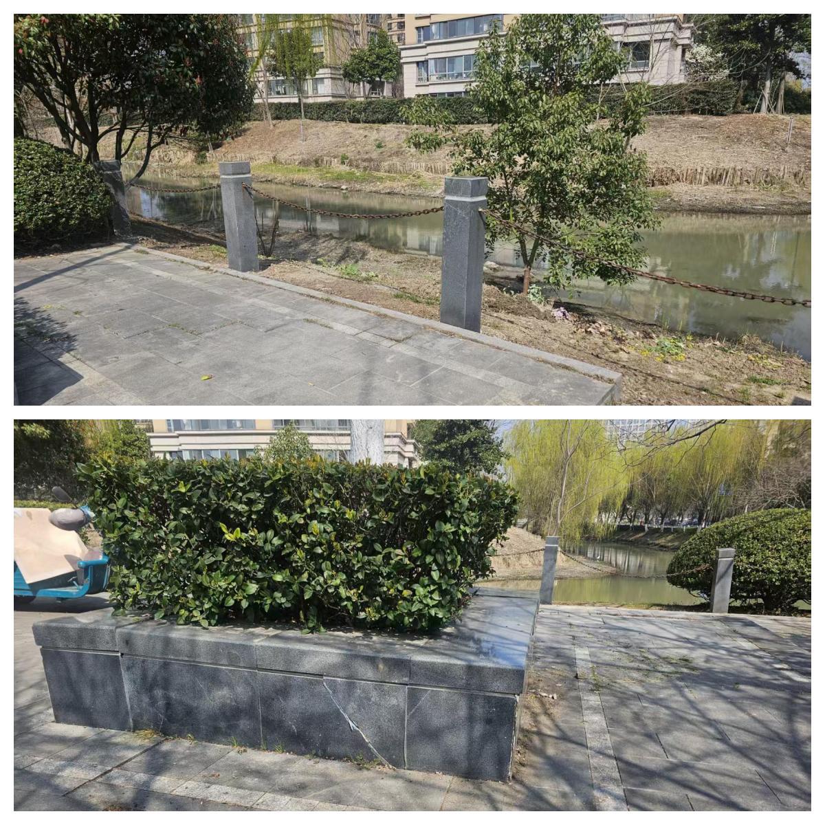 为保障修复工程质量和进度,社区工作人员全程跟进施工过程,主动协调解决施工中遇到的各类问题,实时监督施工细节,杜绝敷衍了事、偷工减料等情况。经过几天的紧张施工,破损的花坛被重新修缮平整,脱落的瓷砖全部更换一新,倒塌的河道护栏也完成了更换和加固,原本存在隐患、略显杂乱的绿道路段,重新变得整洁美观、安全有序。