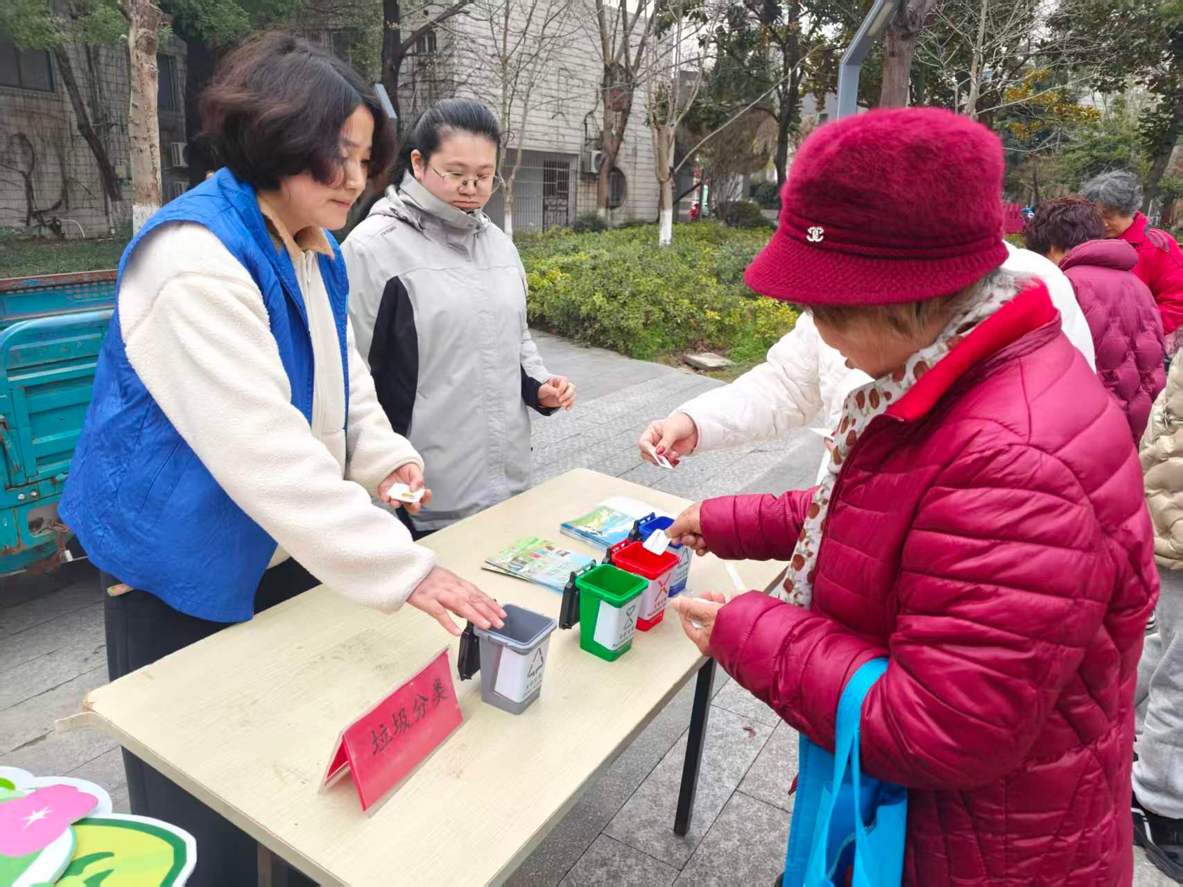 社区坚持“贴近居民、贴近生活”的宣传原则,针对不同群体精准发力。面向辖区居民,依托元宵节、学雷锋日等便民服务活动契机,在社区宣传角和公园等人员密集区域设置宣传点位,工作人员与志愿者们通过发放分类指南手册、面对面讲解分类知识、开展趣味分类小游戏等互动形式,让居民在轻松氛围中掌握垃圾分类技巧,强化环保责任意识。