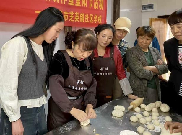 “这个面饼要擀得再薄一些”“捏的时候要轻压排气”……在芝英镇芝英一村“芝味坊”里,芝英镇社区学校的学员们正跟着授课老师胡炜莉学习烤肉麦饼。学校以肉麦饼、小麦饼制作教学为核心,结合各类特色活动开展沉浸式教学,成品免费赠予活动参与者。
