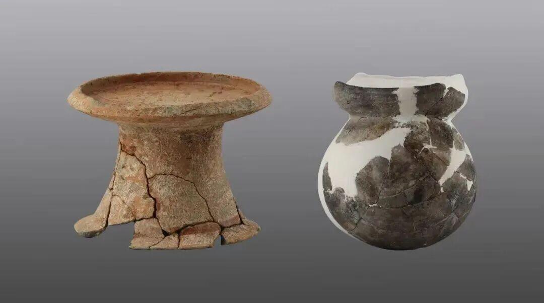 左为彩绘凤鸟纹陶豆 图源浙江考古
