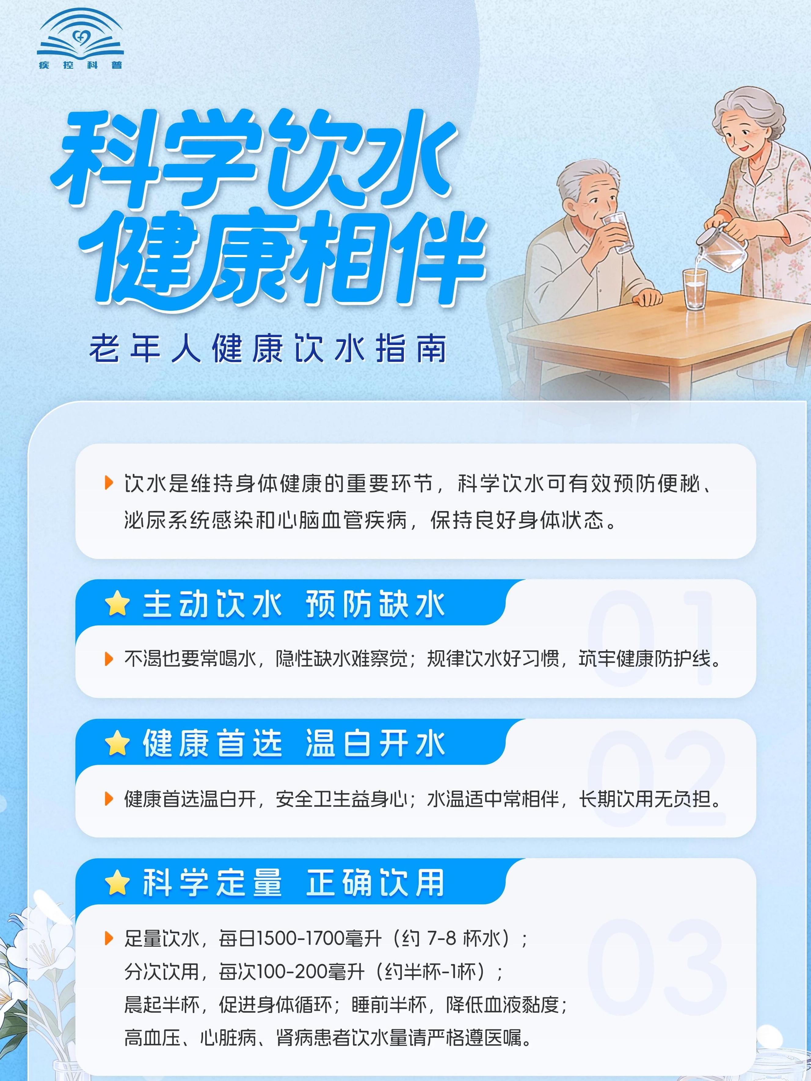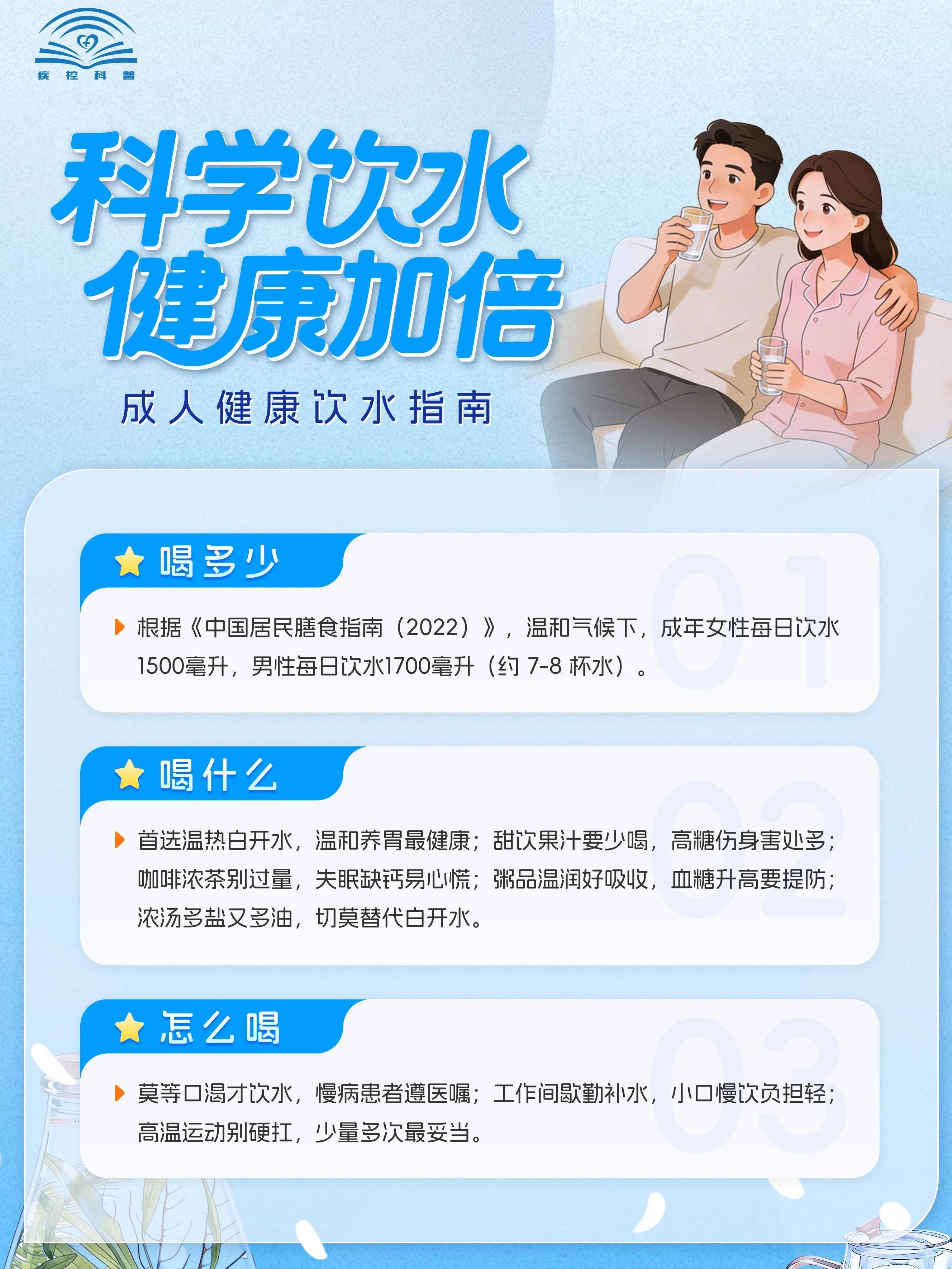 莫等口渴才饮水,慢病患者遵医嘱;工作间歇勤补水,小口慢饮负担轻;高温运动别硬扛,少量多次最妥当。