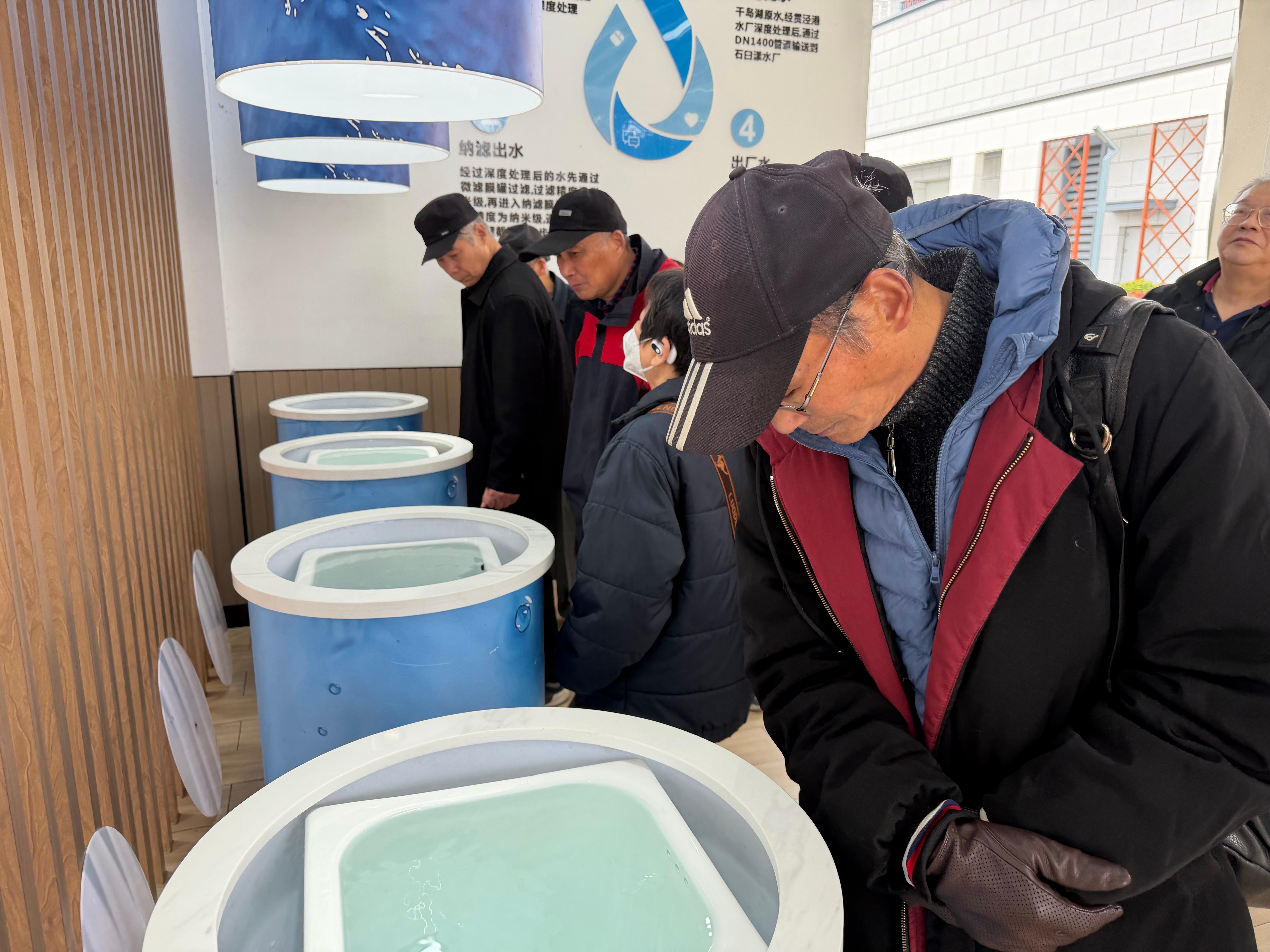 在水厂讲解员的带领下,参观队伍依次深入自来水常规处理、臭氧-活性炭深度处理、纳滤膜净化车间等净水工艺。生动阐释了从水源生态湿地初步净化、水源地取水,到水厂处理,再到纳滤膜技术精准过滤的全链条制水工艺。在被誉为“超级净化器”的纳滤膜设备前,参观者们驻足观察纳米级过滤原理演示,直观感受这项国际领先技术。“现在我们居民家中的自来水千岛湖原水净化后占比约40%,本地原水通过生态湿地净化经水厂纳滤膜处理水占比约60%,实现从‘合格水’到‘优质水’的跃升,饮用水口感得到提升,水质安全进一步保障。”