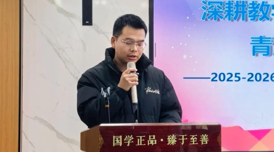颁奖结束后,新教师代表龙毅老师登台分享成长感悟,从初入岗位的懵懂探索,到在青蓝工程帮扶下的稳步提升,字里行间满是对教育事业的热忱与对指导教师、学校的感恩,也展现出青年教师的责任与担当。
