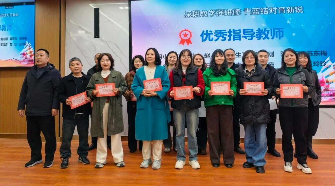 教科室依据青蓝工程帮扶工作要求,结合上学期过程管理成效与工作成果综合考评,依次评选出 “新锐教学先锋奖”、“研修精进奖”、“优秀指导教师奖”。获奖教师依次登台领奖,现场掌声阵阵、喝彩不断,共同见证每一份耕耘与成长。