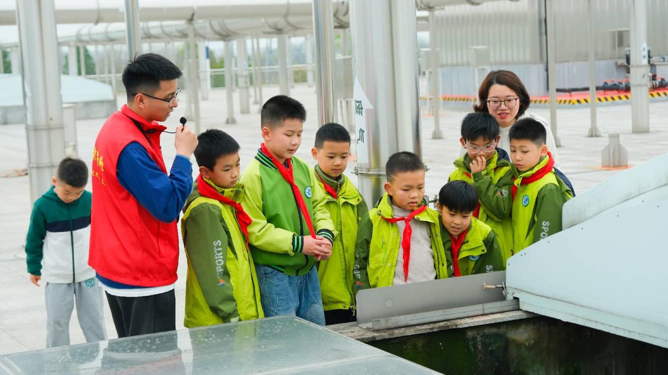 活动现场,公司设置的秋滨污水处理厂沙盘展示区首度亮相,“治水尖兵”党员志愿者们化身“讲解员”,结合沙盘直观模型,用通俗易懂的语言向同学们介绍秋滨污水处理厂的整体布局,以及污水从收集、处理到达标排放的全流程,帮助同学们快速建立起对污水处理的整体认知。