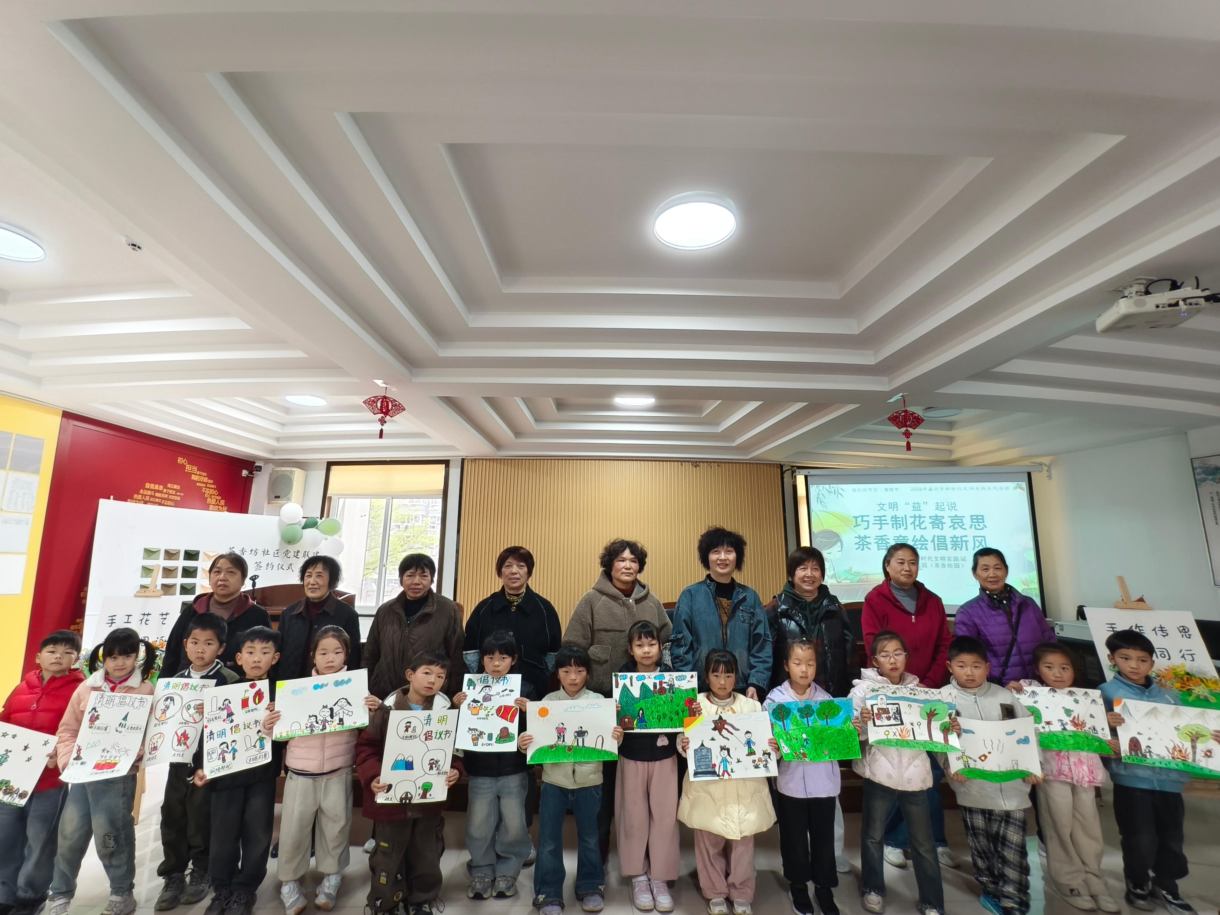 清明将至,为弘扬中华优秀传统文化,深化移风易俗实践,嘉兴经开区塘汇街道茶香坊社区新时代文明实践站与塘汇实验幼儿园(茶香坊园)携手举办“巧手制花寄哀思 茶香童绘倡新风”文明“益”起说系列活动。通过“一老一小”共同制作扭扭花,孩子们自己创作文明祭扫创意手绘报等形式,用手作寄情替代传统纸钱香烛,让幼儿在实践中理解“缅怀先辈、文明追思”的意义,带动家庭和社区共同践行移风易俗,共同营造文明、环保的节日氛围。