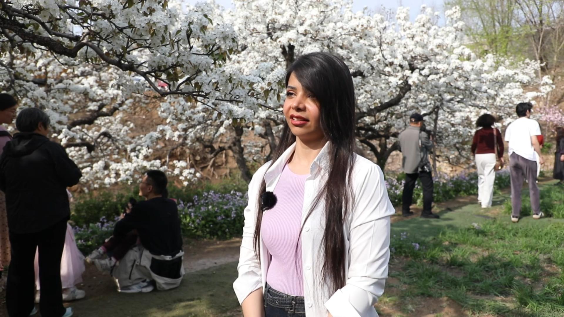 来自巴基斯坦的叶修,说着一口流利的汉语,她欣喜地说道:“我非常喜欢中国,我在这里玩得很开心,这里的梨花非常美,以后我会带着我的朋友来这里游玩。”