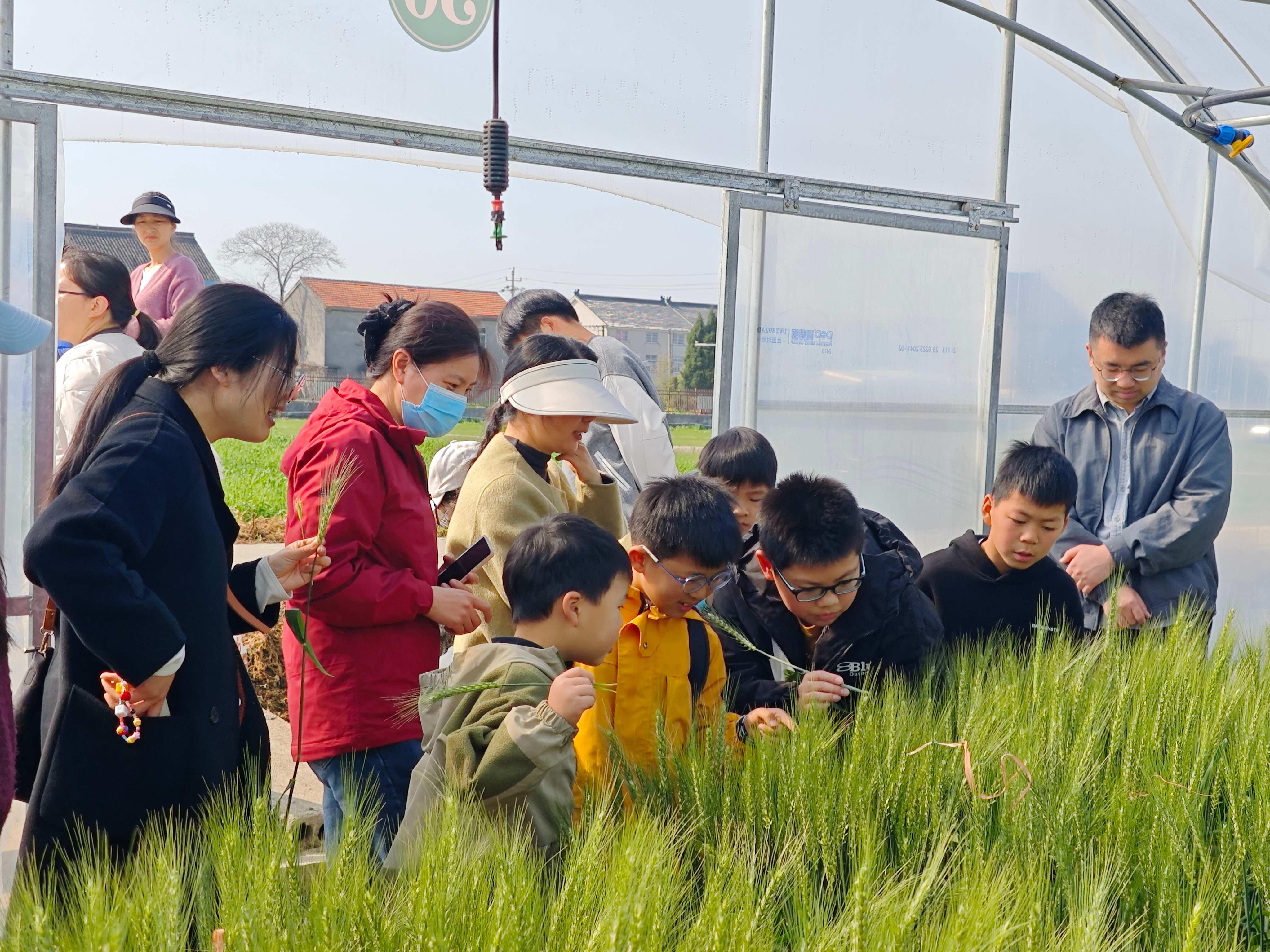 一大早,15组亲子家庭集结出发,走进嘉兴市农业科学研究院古塘现代农业科技示范基地。在农科院工作人员的带领下,大家钻进智能大棚,凑近观察农作物的生长脉络,伸手触摸嫩绿的麦穗,听老师用通俗的语言讲解现代栽培技术和农作物生长周期。孩子们眼里满是好奇,家长们也跟着认真听讲,不少人拿出手机拍下孩子探索的瞬间,准备分享到朋友圈。