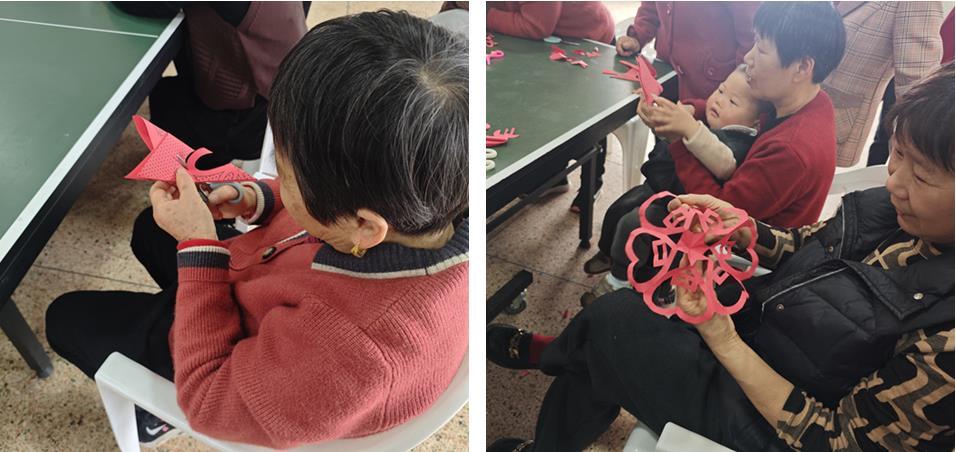 有的剪出端庄大气的“福”字,寄托着对幸福生活的美好祈愿;有的剪出寓意迎春纳吉的“春”字,传递着对新春的希望与祝福;还有的剪出饱满圆润的元宝造型,象征着财源广进、富贵吉祥……现场气氛热烈,欢声笑语不断,村民们互相展示自己的作品,互相帮助,脸上洋溢着喜悦与自豪。