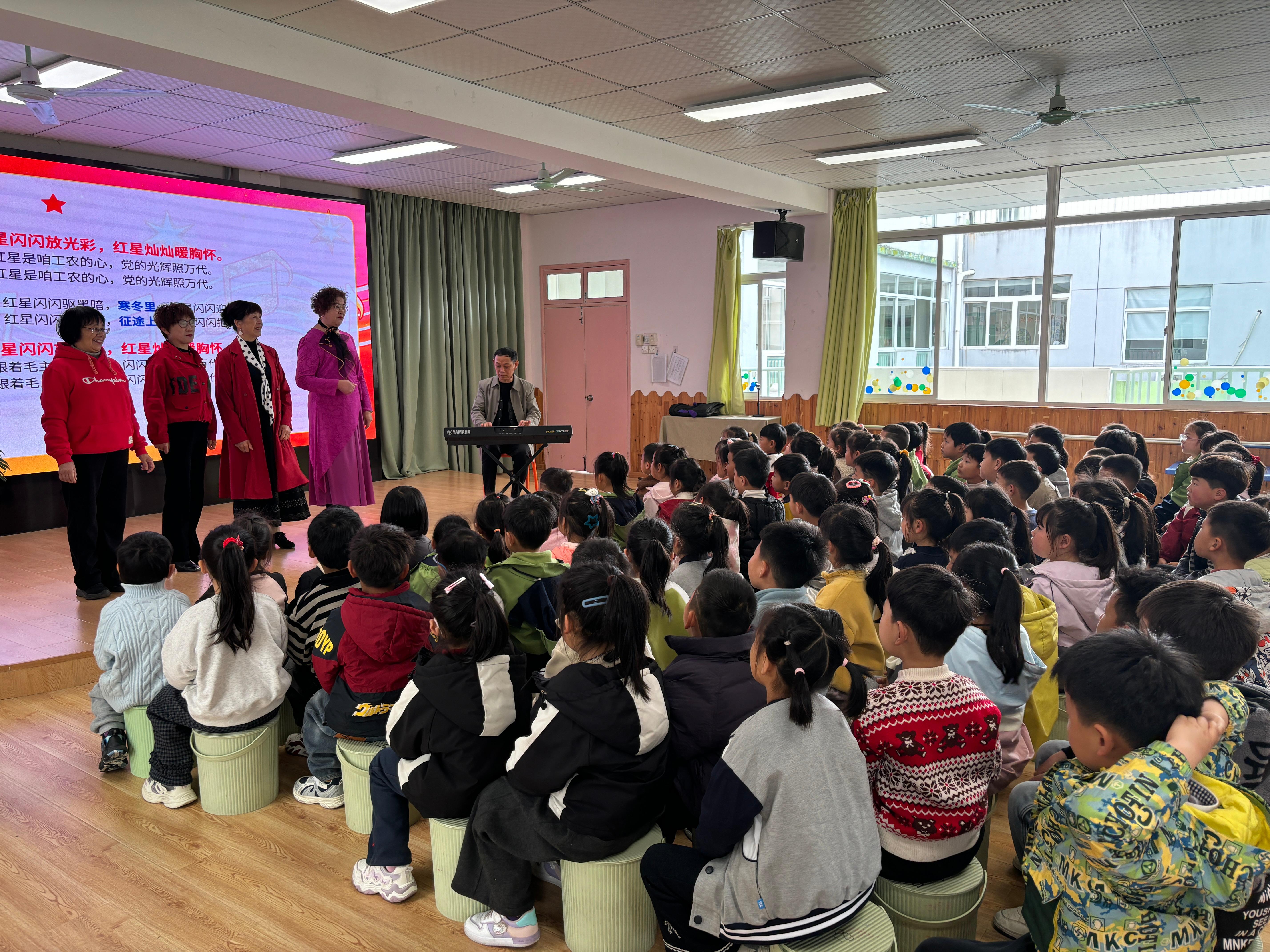 活动尾声,在退役军人钱明华老师的带领下,孩子们举起小手,跟着旋律齐声唱响《红星歌》。稚嫩却坚定的歌声回荡在校园的每个角落,悠扬的旋律中,既有对革命先烈的深切缅怀与崇高敬意,更洋溢着新时代少年儿童朝气蓬勃、勇担使命的青春风采。