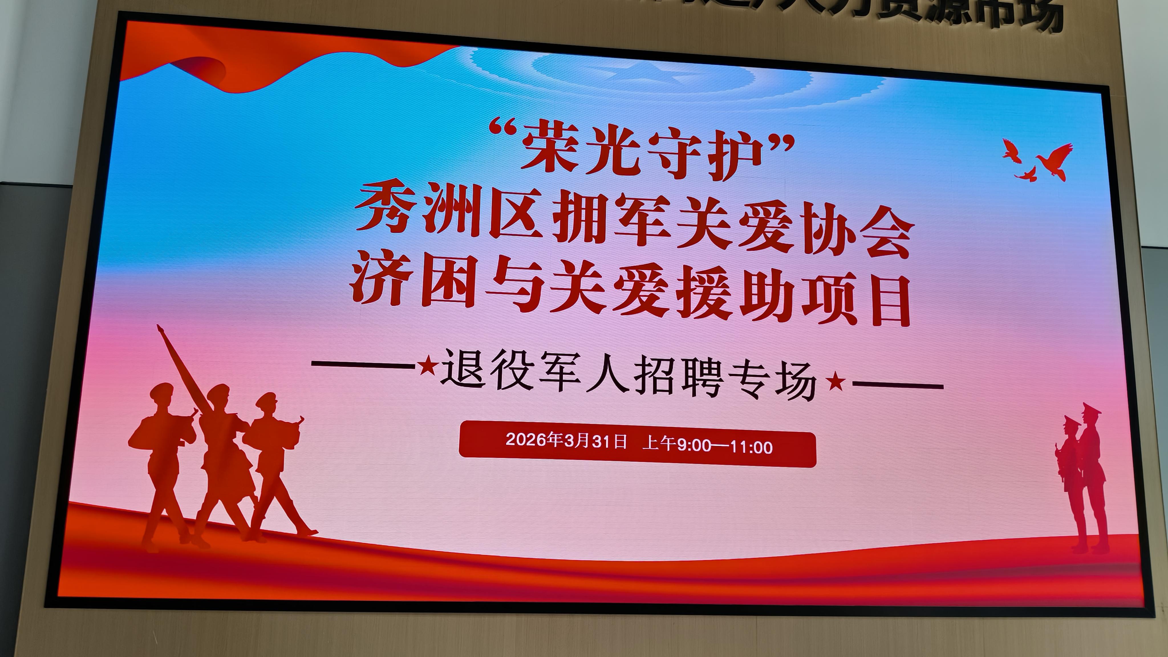 3月31日上午,嘉兴市秀洲区国家高新区(高照街道)人才市场内氛围热烈,“荣光守护”济困与关爱援助项目退役军人专场招聘会在此举办。活动由秀洲区拥军关爱协会组织,秀洲区退役军人事务局现场指导,旨在为退役军人搭建精准就业平台,助力他们在人生新战场上续写荣光。