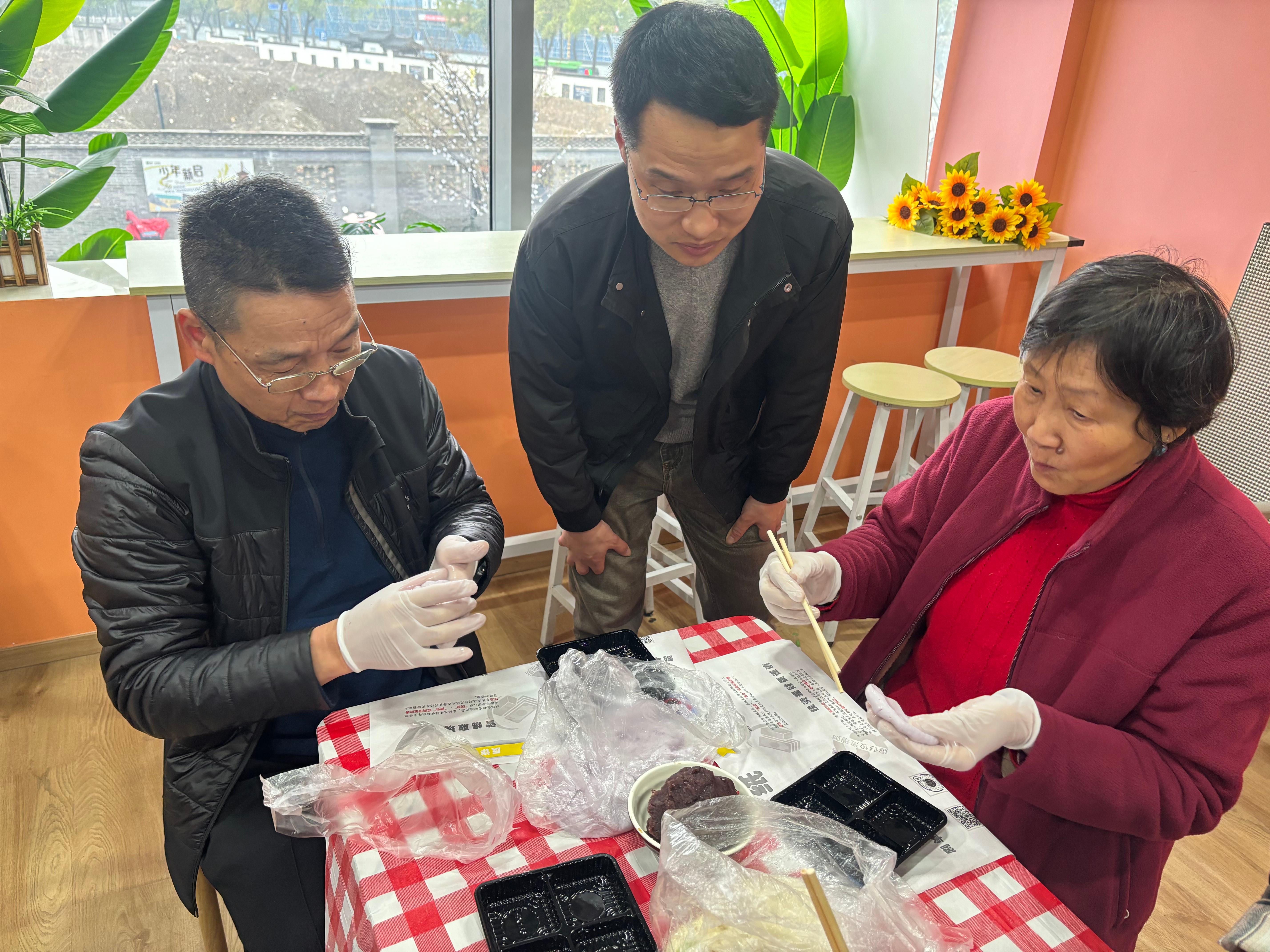 青团出锅后,香气四溢。嘉源大管家蜜宝志愿者将热气腾腾的青团分装成盒,送往辖区独居老人家中。每到一户,志愿者都细心询问老人的身体状况和生活需求,并送上节日的问候。老人们接过青团,脸上洋溢着感动的笑容,纷纷表示“吃在嘴里,甜在心里”。