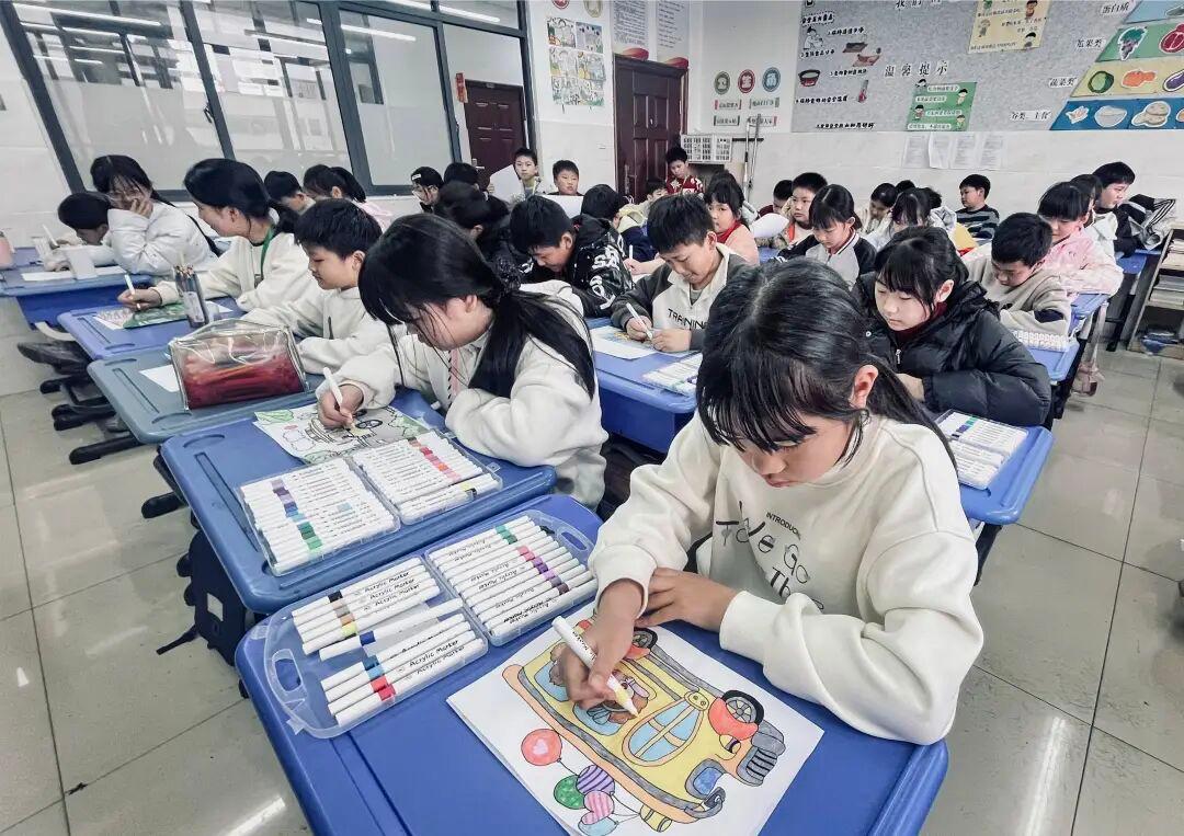金华市秋实学校的孩子们则用画笔描绘“童绘春光,绿行相伴”的美好图景。“坐公交车出行,能减少多少碳排放?”一个个贴近生活的小问题激发了他们对绿色出行的浓厚兴趣。画纸上,开满鲜花的公交站台、骑自行车郊游的一家人、化身“绿色使者”穿梭花海的公交车……童真的笔触传递着孩子们对低碳生活的向往与呼唤。