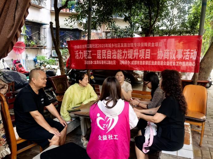① 建立 “社区 + 社工 + 居民骨干 + 自组织 + 党员领航员” 多元协商议事机制,依托 “明航协商联席会”,围绕小区环境卫生、设施改善、微更新项目资金使用等民生议题开展多场次协商活动,同时联动驻区单位实现活动联办、资源共享,让协商议事更具广度和深度。2025 年 5 月至 8 月,社区先后在中二区、甲一区组织协商议事会,累计收集居民建议 20 余条,为治理决策筑牢民意基础。