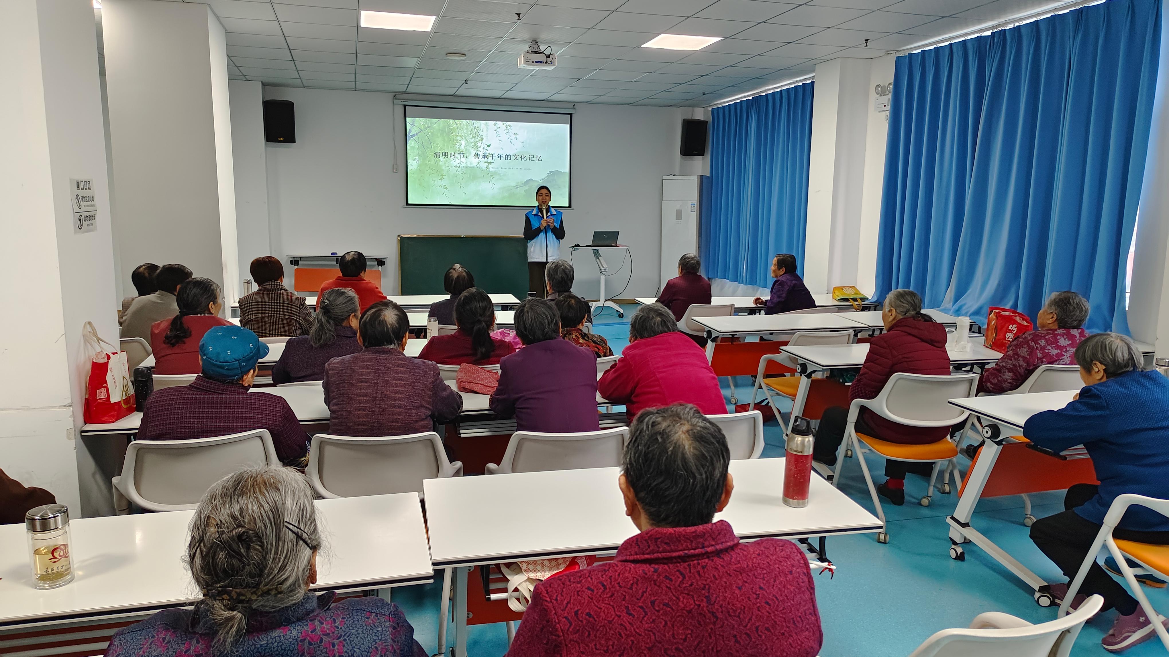 活动现场工作人员围绕清明节的文化内涵,向在场老人们娓娓道来节日的由来与习俗。从“万物生长此时,皆清洁而明净,故谓之清明”的节气释义,到踏青、插柳、扫墓祭祖的传统习俗,再到流传千古的清明诗句,结合杜牧《清明》、吴惟信《苏堤清明即事》等经典诗作,带领老人们重温清明文化,感受传统节日的独特韵味,让“慎终追远、敦亲睦族”的文化精神深入人心。