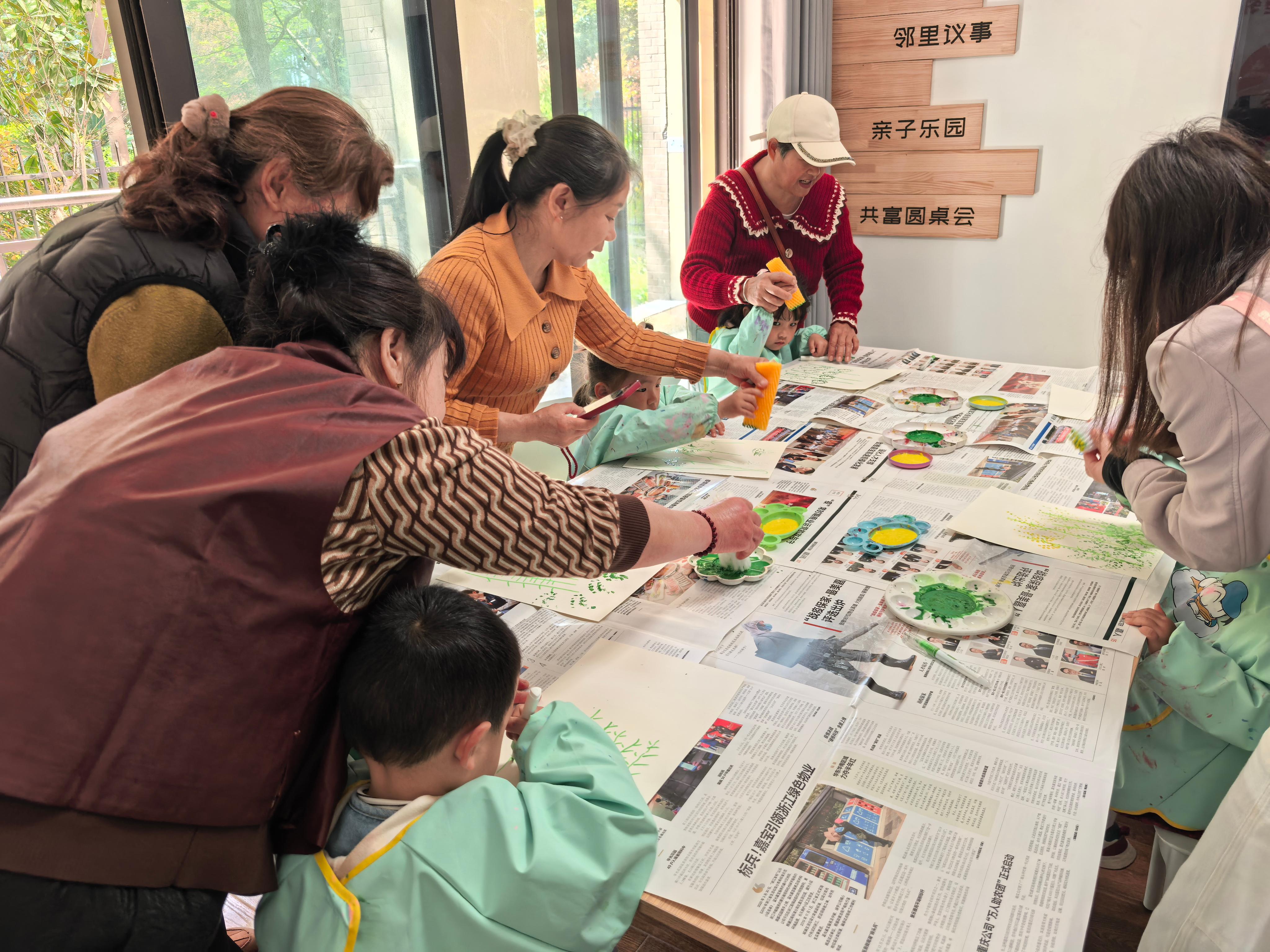 活动伊始,来自城南实验幼儿园(新月园)的志愿者老师化身“启蒙向导”,带领孩子们跟着欢快的旋律做起了趣味操,伸展肢体、活动关节,现场氛围迅速活跃起来。趣味操结束后,孩子们在老师的带领下做起“大风吹”和跳绳等小游戏,孩子们的笑声此起彼伏。在“春天的油菜花”绘画环节,志愿者老师用生动易懂的语言为孩子们耐心讲解油菜花的形态、颜色特点,手把手指导孩子们勾勒线条、填充色彩。孩子们充分发挥想象力,指尖翻飞间,金黄的油菜花在画纸上绽放,有的稚嫩简约,有的创意十足,展现出他们对春天的别样理解与热爱。家长们在一旁细心陪伴,不时给予鼓励,亲子间的默契在一笔一画中悄然升温。