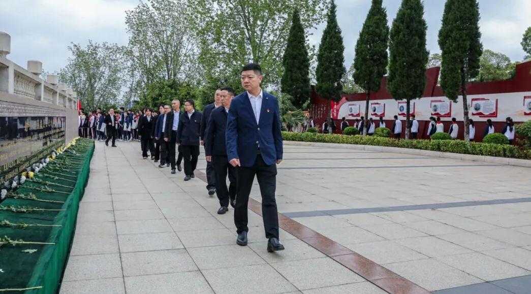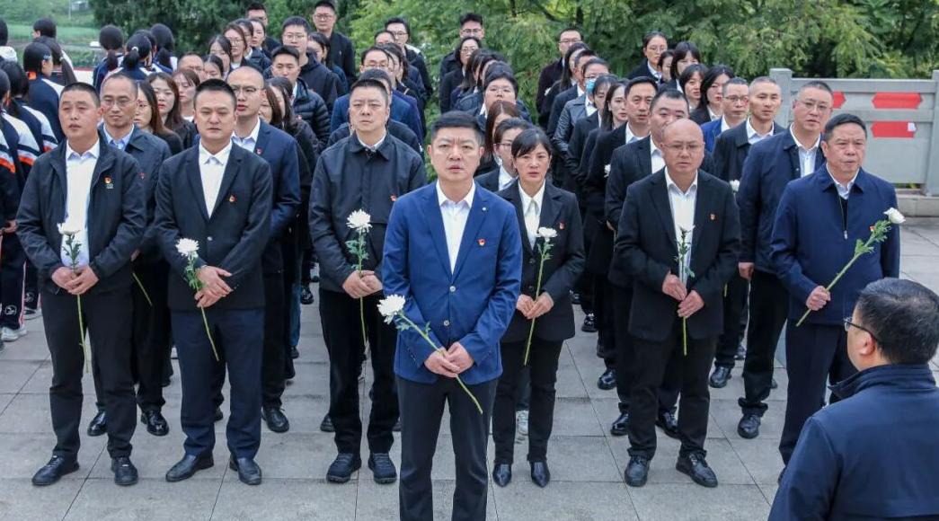 国歌唱毕,全场肃立,向为革命事业英勇献身的烈士默哀一分钟,并深深三鞠躬,致以最深切的悼念。随后,党员代表们怀着崇敬的心情,依次向烈士敬献鲜花,并缓步绕行瞻仰烈士纪念碑,追思先烈们不畏牺牲、无私奉献的崇高精神。