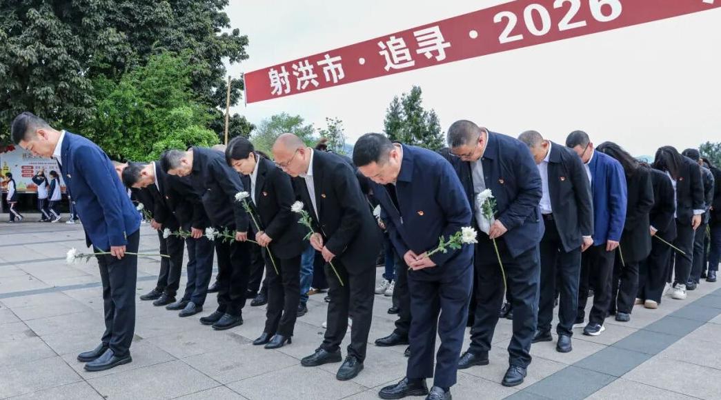 社区文化网(苏勤 谢涵)青山埋忠骨,史册载功勋。在清明节来临之际,为深切缅怀革命先烈,弘扬爱国主义精神,4月2日下午,中共射洪市中医院委员会联合中共射洪市红十字医院总支委员会、中共射洪市太和街道城西社区卫生服务中心支部委员会,组织党员前往烈士纪念设施保护中心,共同开展“追寻·2026·清明祭英烈”主题教育实践活动。