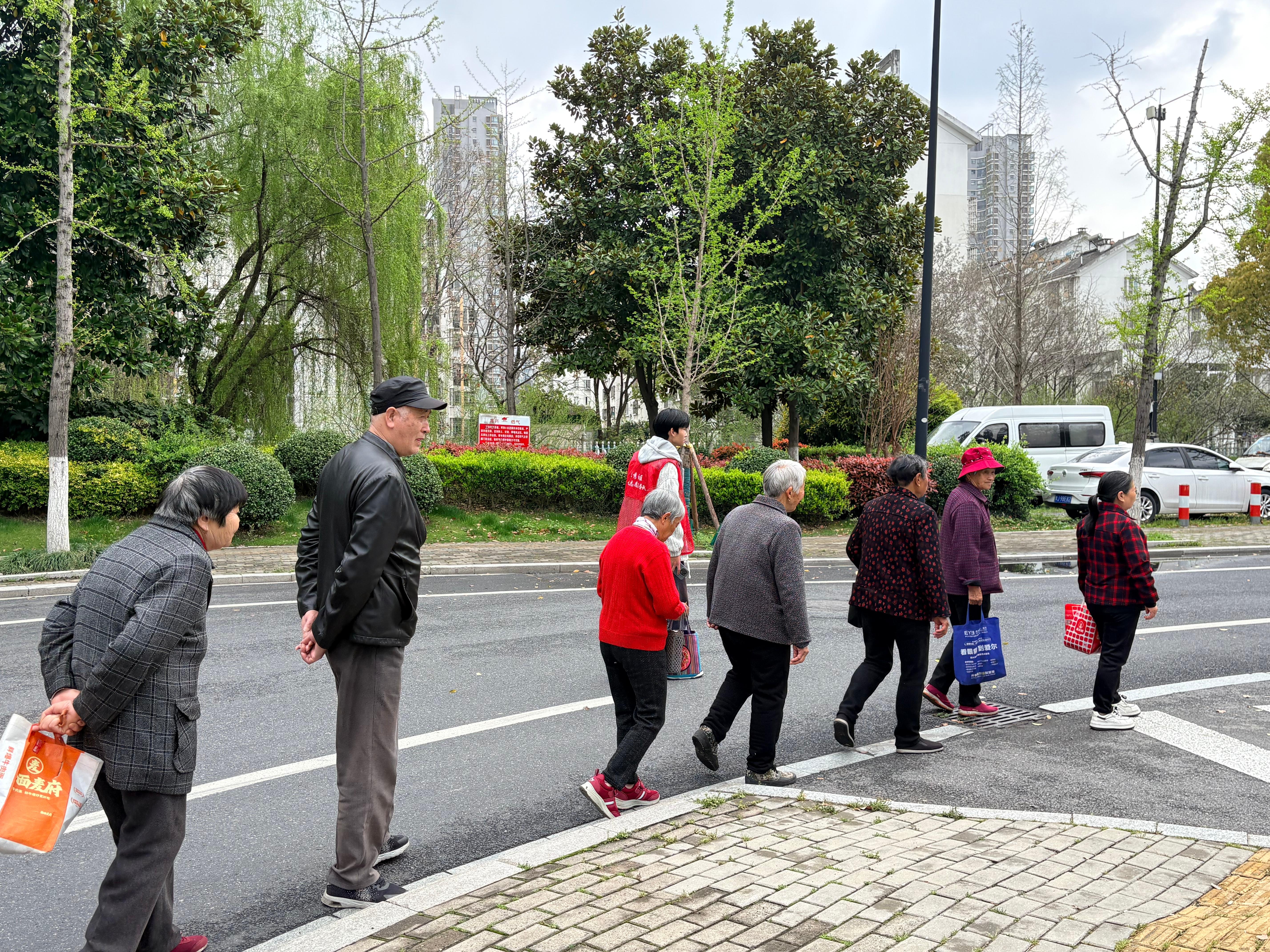 为让老年朋友们走得安心、玩得舒心,活动在路线中每隔一公里便设置一个“暖心休息点”,供大家随时补充体力、稍作休憩。老年朋友们沿着路线稳步前行,一边舒展筋骨、畅快呼吸,感受着春日的清新与活力;一边欣赏沿途风光,闲话家常,欢声笑语洒满一路。此次健步走队伍还特别邀请了嘉兴技师学院的志愿者们全程护航,他们搀扶着行动不便的老人,及时提供帮助,提醒大家注意脚下路况,用青春的身影为这场春日之约增添了一抹温暖的亮色,让每一位参与者都能卸下顾虑,安心享受运动带来的快乐。