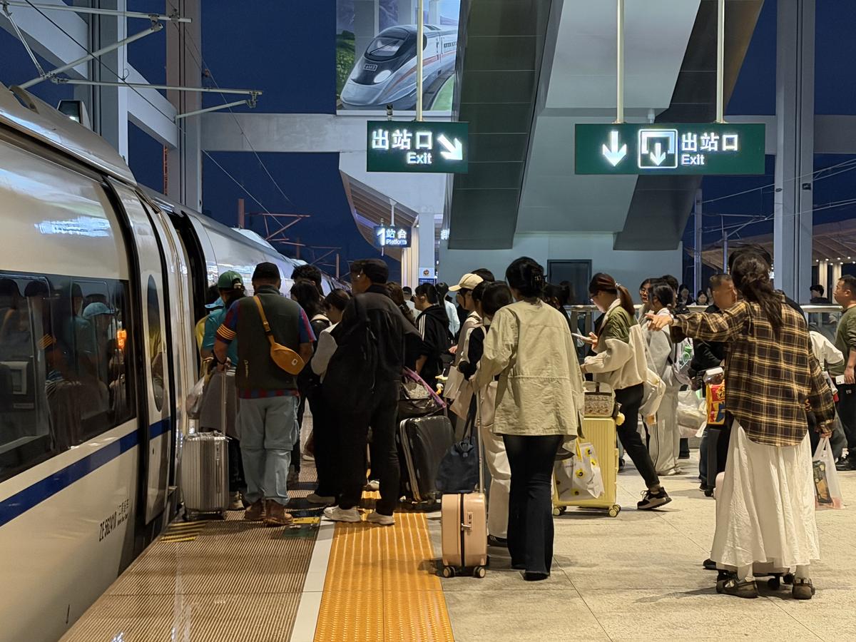 4月6日23时31分,随着西安北开往横店的G2025次列车平稳驶入杭温高铁横店站并停靠站台,横店站清明假期铁路运输圆满收官。3天来,横店站客流持续高位运行,累计到发旅客达60441人次,同比增长50%,刷新清明假期客流历史纪录。