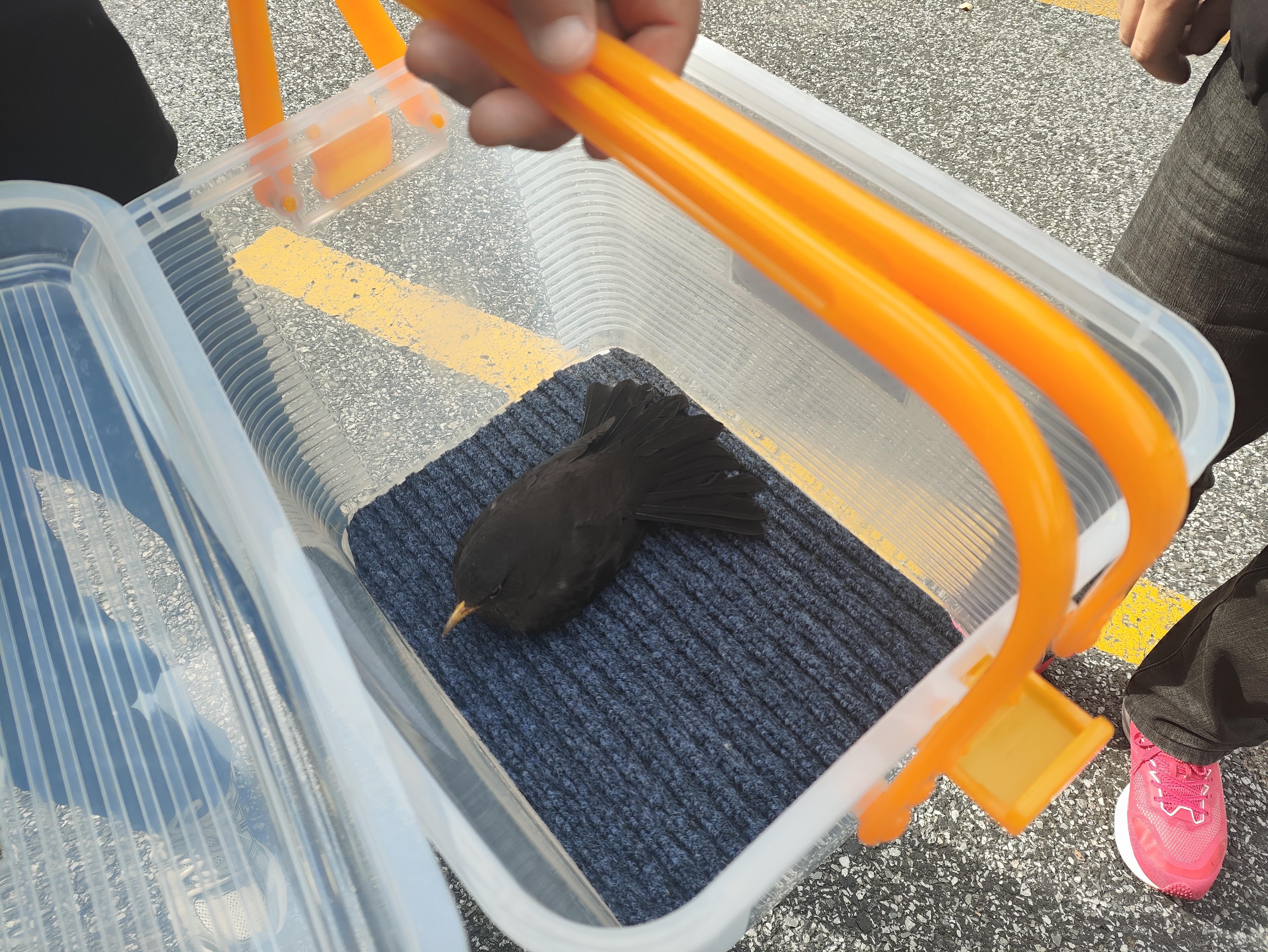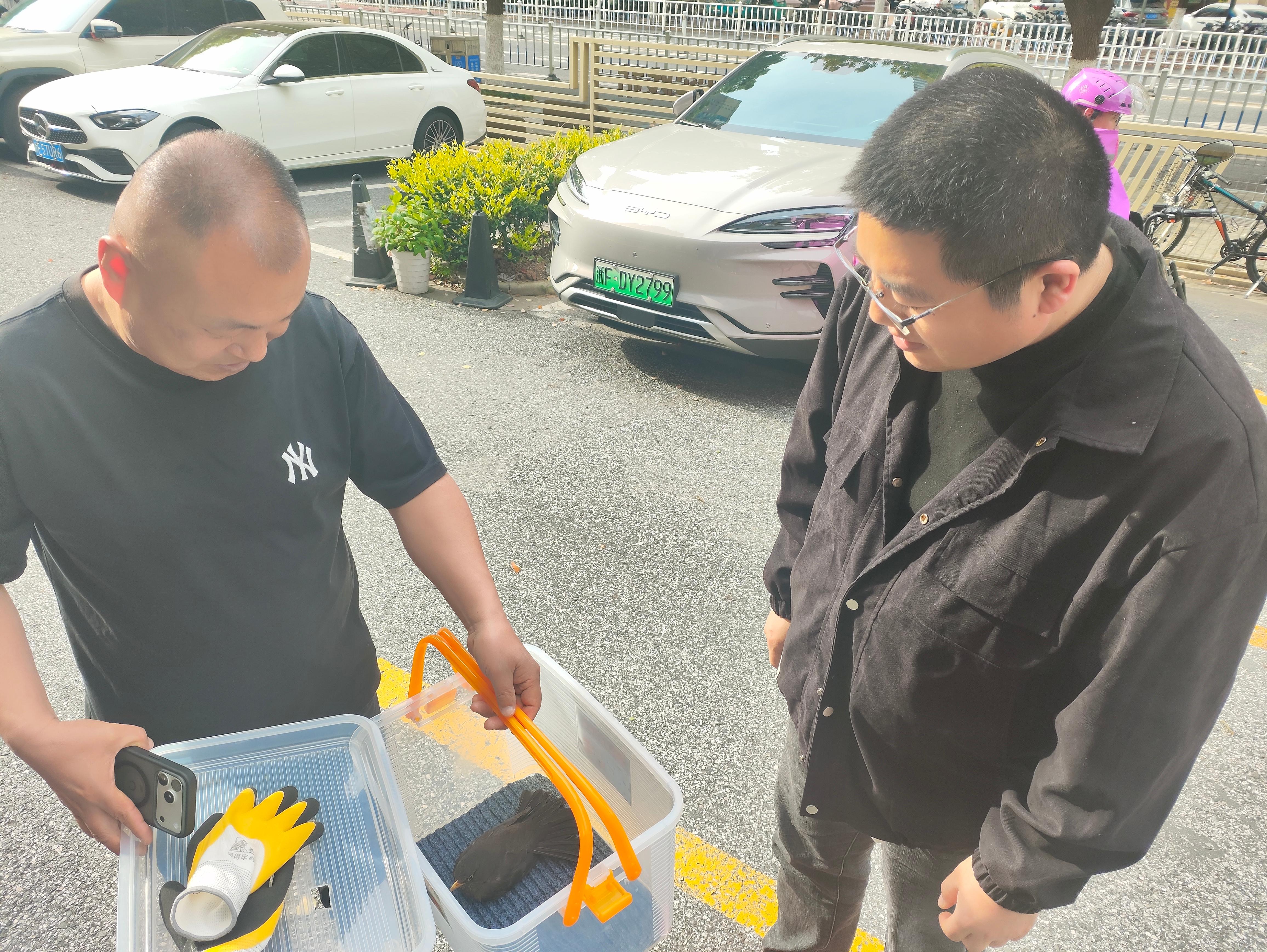 为避免乌鸫受到二次伤害,工作人员小心地将其转移至透气的收纳箱中,为其营造安静、避光的临时安置环境,同时第一时间联系嘉兴市陆生野生动物救护站,详细说明乌鸫的状态与发现位置,协调专业救助事宜。待救护站工作人员抵达后,庆丰社区巡查人员将乌鸫安全移交,由专业人员带回救护站进行进一步的检查、救治与养护,待其完全康复后,将择机放归自然。