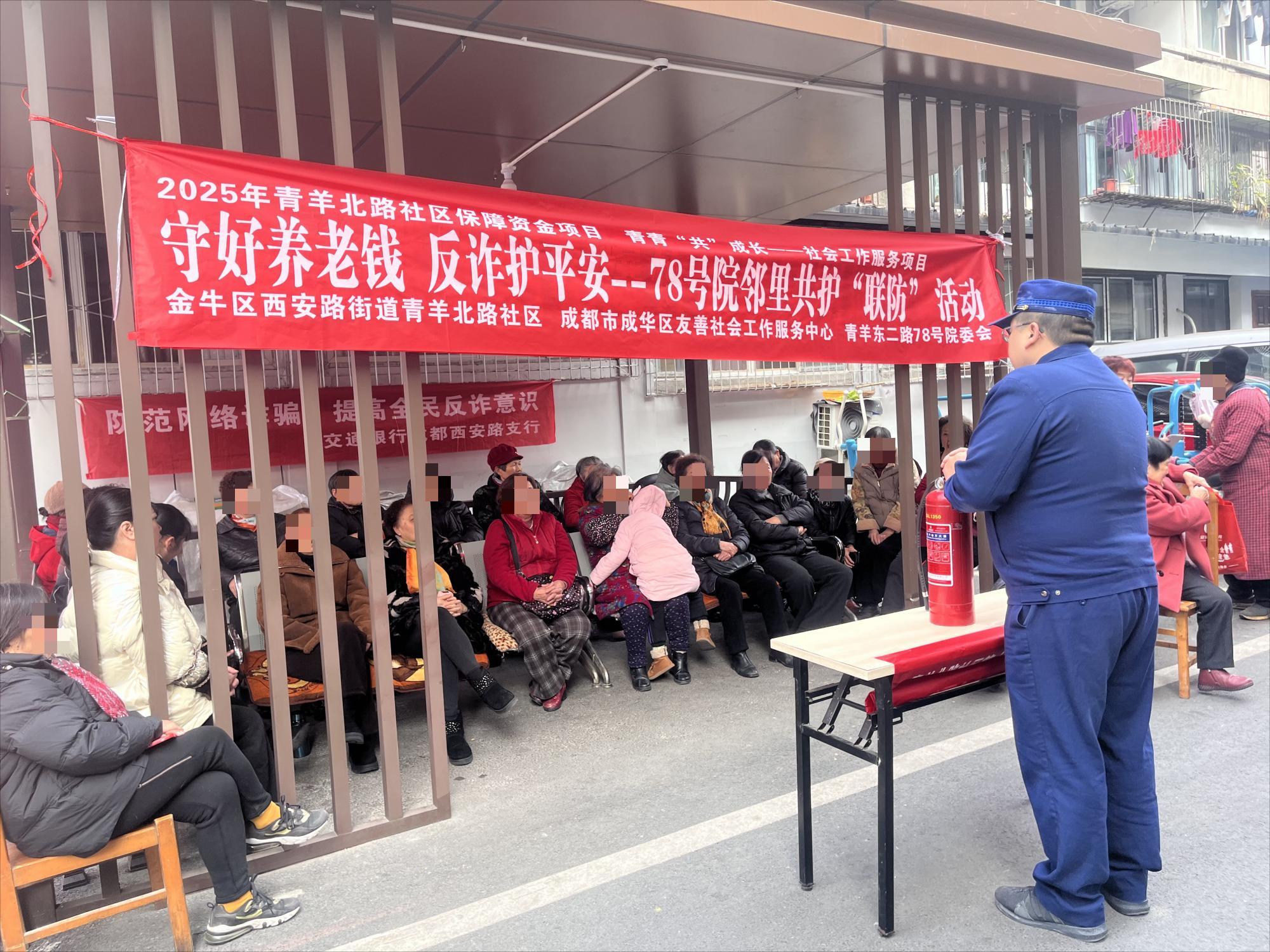 为持续深化平安社区建设,切实提升居民安全防范意识与应急实操能力,成都市金牛区西安路街道青羊北路社区联合成都市成华区友善社会工作服务中心、青羊东二路 78 号院委会,于 2025 年 12 月至 2026 年 3 月期间,在青羊东二路 78 号院陆续开展消防安全演练、反诈联防守护、手工 DIY + 安全宣教三场主题活动,以多元形式为居民送上安全 “大礼包”,累计吸引百余名居民踊跃参与。