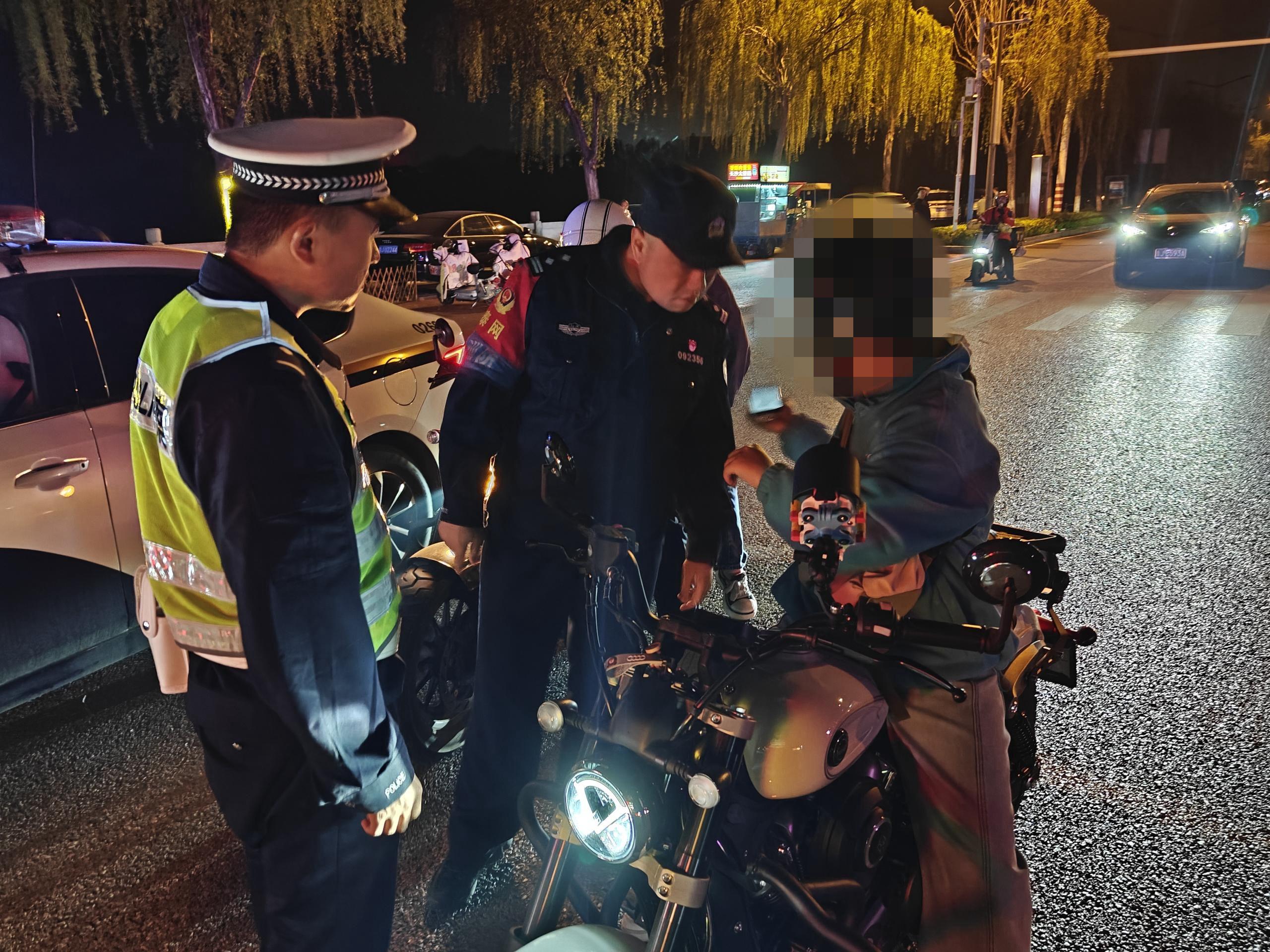 泰安交警岱西大队联合辖区派出所开展“飙车炸街”专项整治行动