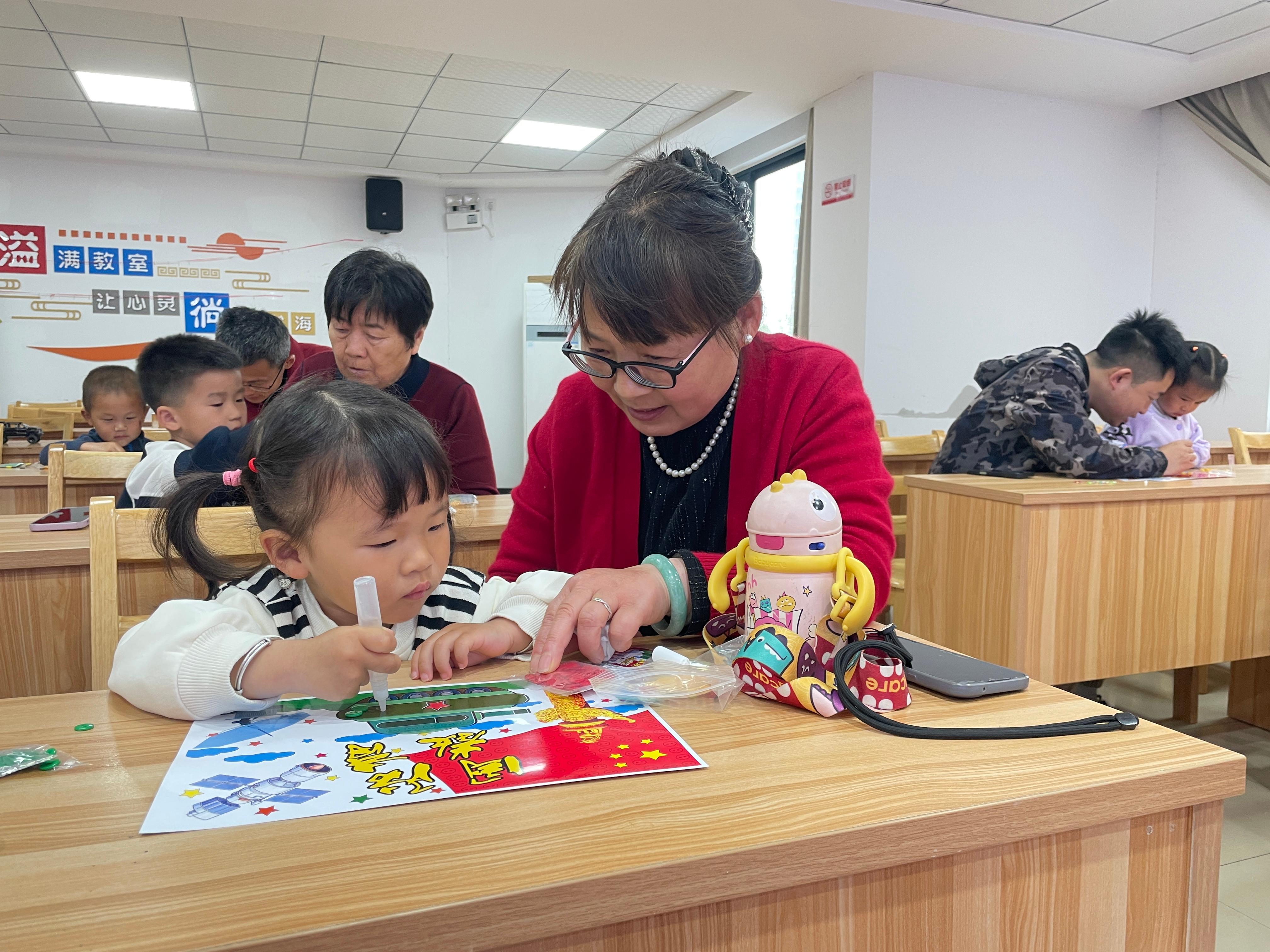 “我要把这幅画挂在家里,提醒自己和家人一起守护国家!”谦谦小朋友举着作品自豪地说。