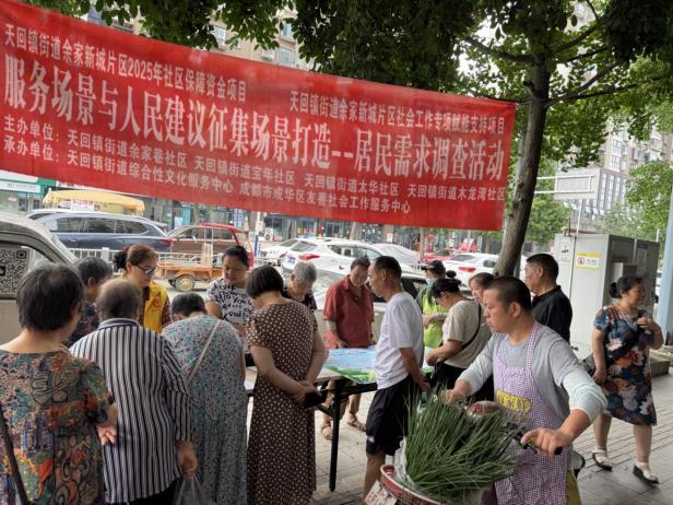 ”2025年6月,一场全覆盖的居民需求调查活动在余家新城片区展开,成都市成华区友善社会工作服务中心的社工与志愿者们,通过现场问卷、面对面访谈、展板互动等形式,走进居民日常聚集的大树下空间,累计回收有效问卷100份,形成了内容详实的需求调查报告。